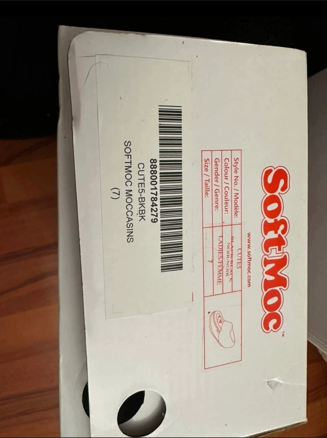 SoftMoc ladies moccasins in black, size 7! These are super comfy and stylish for wearing around the house or even stepping out for errands. They have a cute design with faux fur and beading
