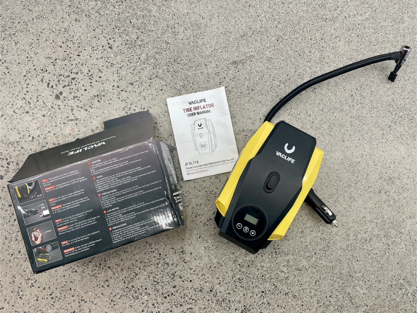 186Be prepared! Here are basic things you need in your trunk! You never know when you (or someone else) may have a flat tire or dead battery. •Vaclife Tire Inflator with the user manual and the original box. •Battery operated tire gage. •Jumper cables. •Also a windshield ice scraper & brush (not pictured) Great for keeping in your car for emergencies! Meet at Main Street Station