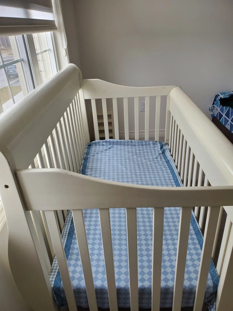 Selling a barely used baby crib with mattress. It's in great condition and ready for a new home. It's a standard size crib and comes with a new mattress. My baby hardly used that.