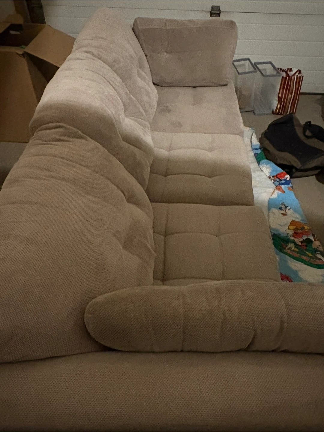 Selling a comfy beige sectional sofa! It's in great shape and ready for a new home. Perfect for lounging and adding a cozy touch to your living space