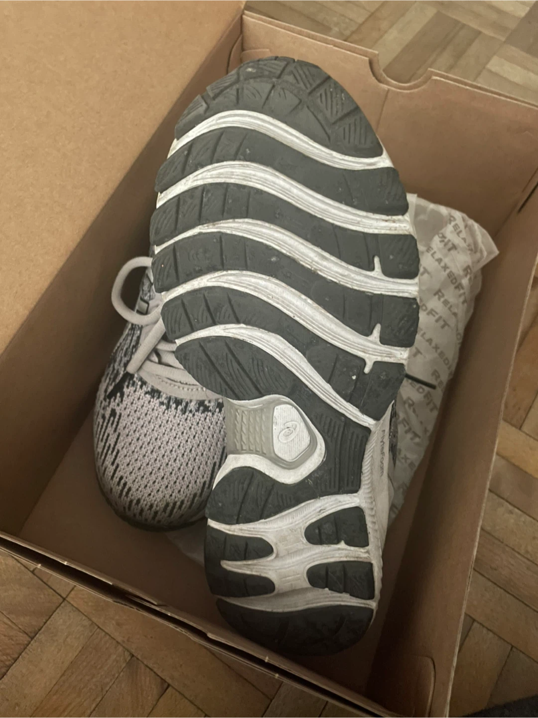 Selling a pair of Asics Gel-Nimbus 25 running shoes in US size 6! These shoes are in good condition and come with the original box. They feature a synthetic fibre and synthetic leather upper with a rubber sole.