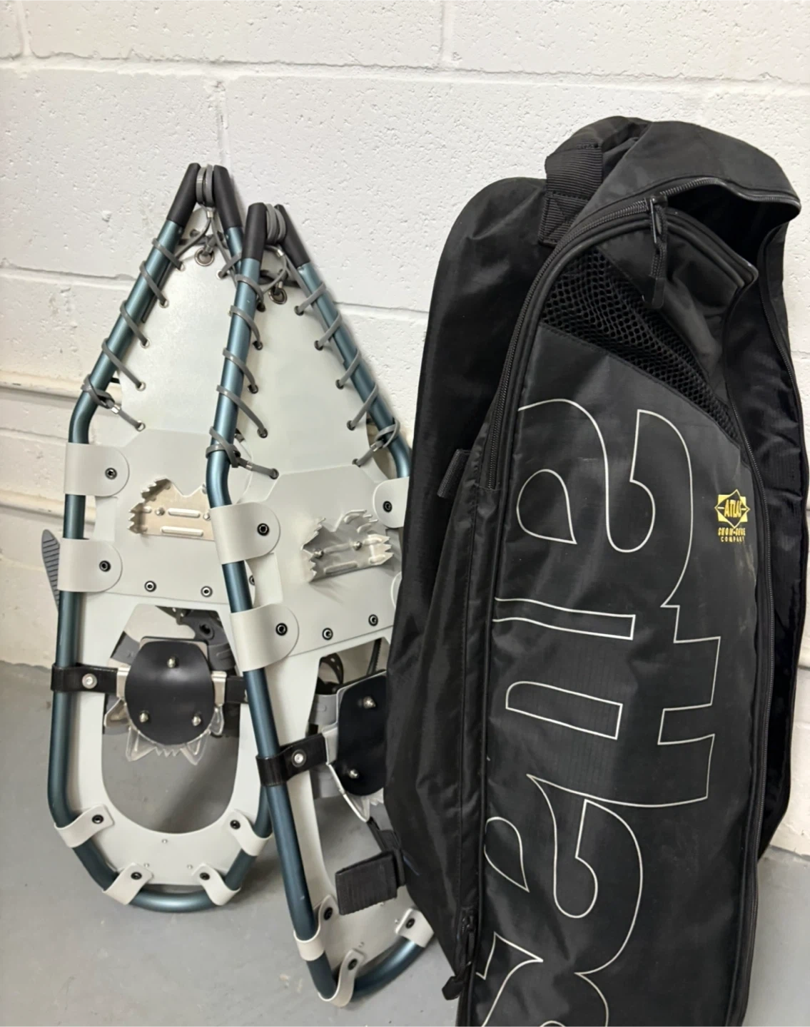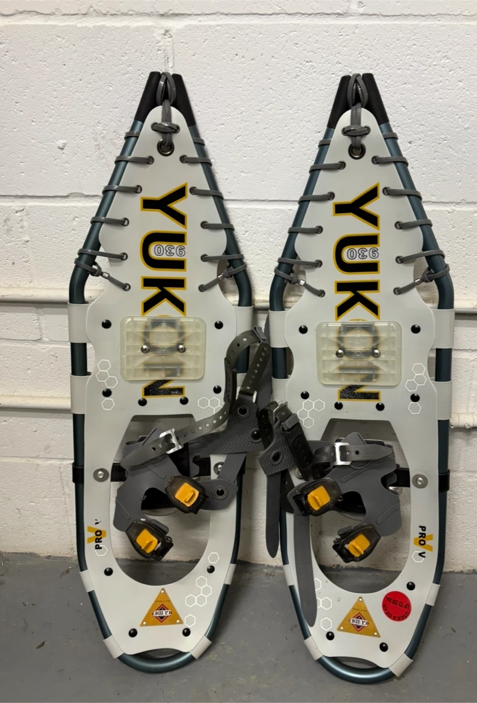 260Grey & Black Yukon Charlie’s 930 Pro V Snowshoes with Ice Cleats Includes a Case & Set of Poles Adult size 9 x 30 Excellent condition