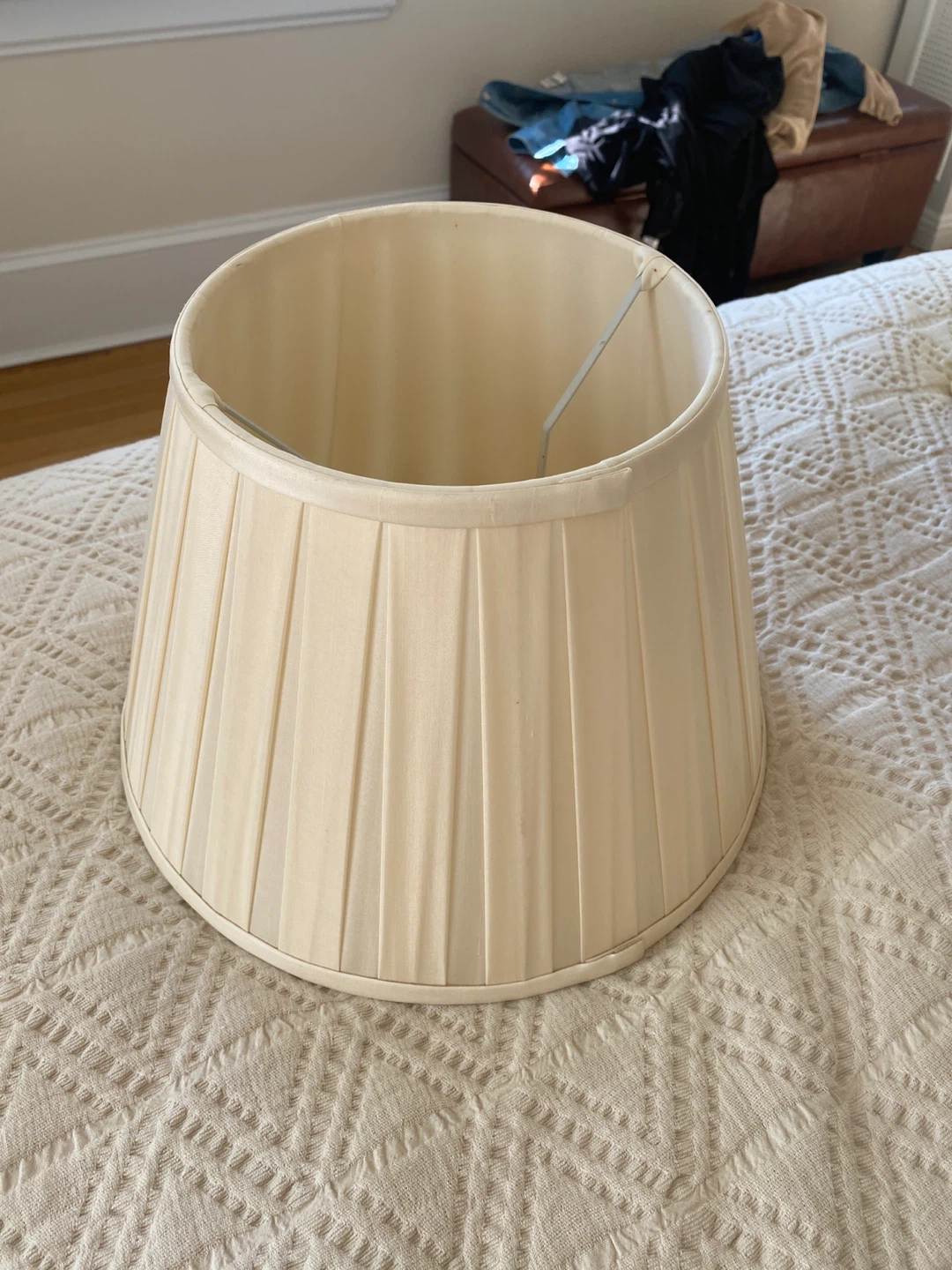 Selling a pleated lampshade in a cream color. It's in great condition and ready to brighten up your space!