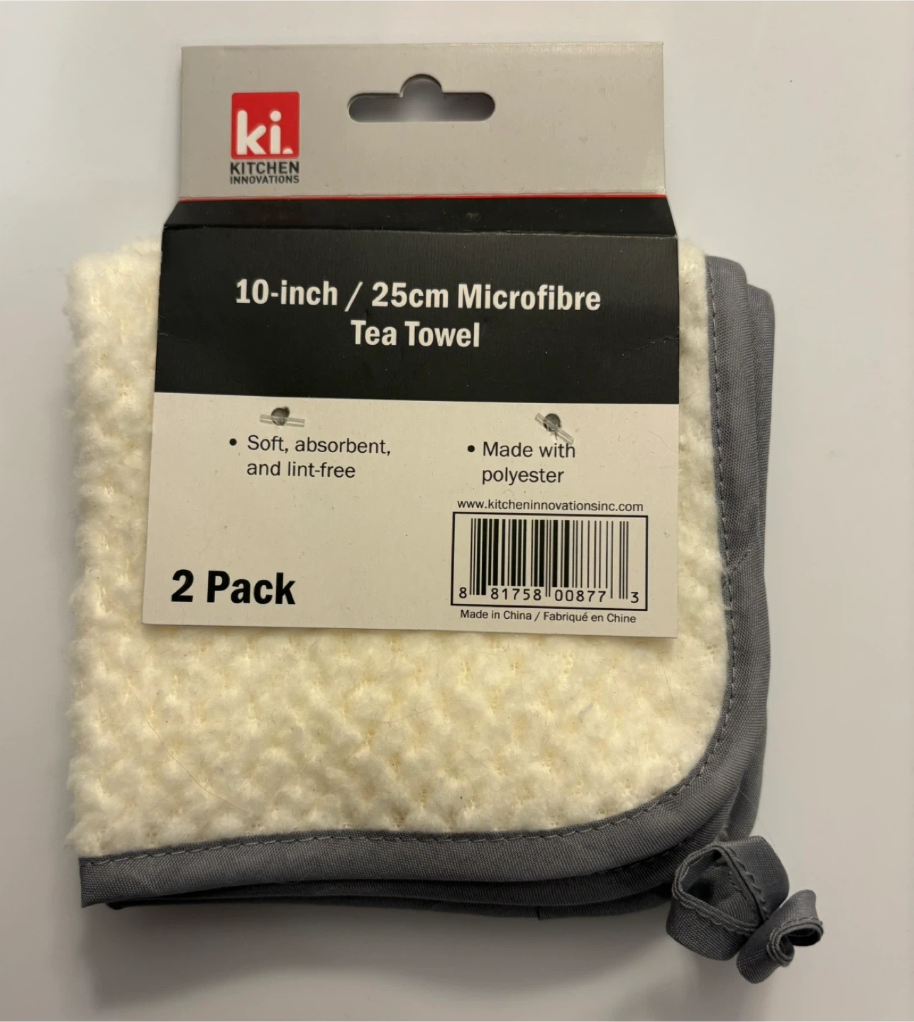 310Selling a 2-pack of Kitchen Innovations microfibre tea towels! They're 10-inches / 25cm and made with polyester. These towels are soft, absorbent, and lint-free, perfect for any kitchen 😊