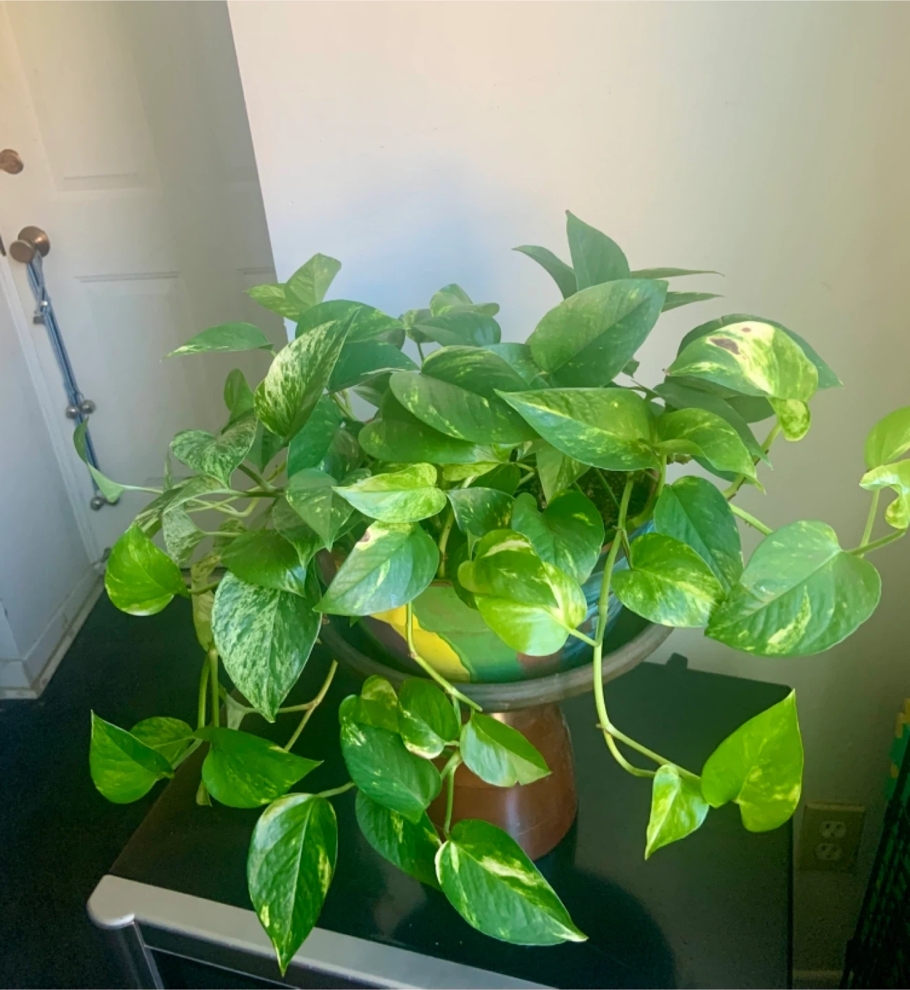 Selling a healthy pothos plant! It's in a colourful decorative pot. Would look great in any room.
