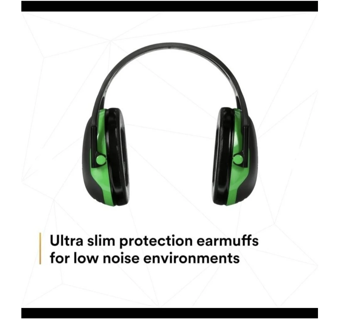 - The 3M Peltor X1A Over-the-Head Ear Muffs provide reliable hearing protection with an NRR of 22 dB, making them ideal for use in construction, manufacturing, maintenance, automotive work, and woodworking. Designed for comfort and durability, these ear muffs feature a lightweight, low-profile design with soft, wide cushions that help reduce pressure and improve wearability during long shifts. The stainless steel wire headband ensures consistent tension and a secure fit, while the black and green color scheme gives them a professional, rugged look. Perfect for both professional and home workshop use, these Peltor ear muffs deliver dependable noise reduction without compromising comfort or performance.