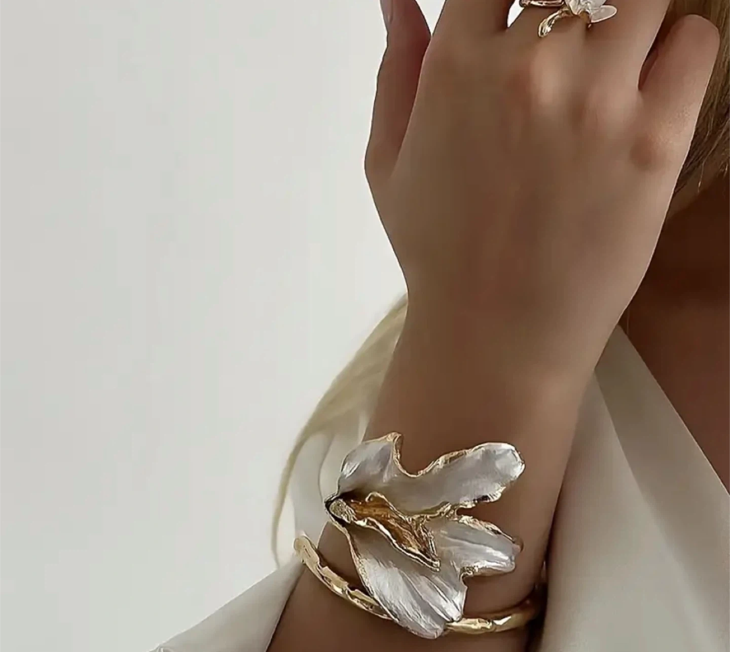 Floral Cuff Bracelet - Gold & White