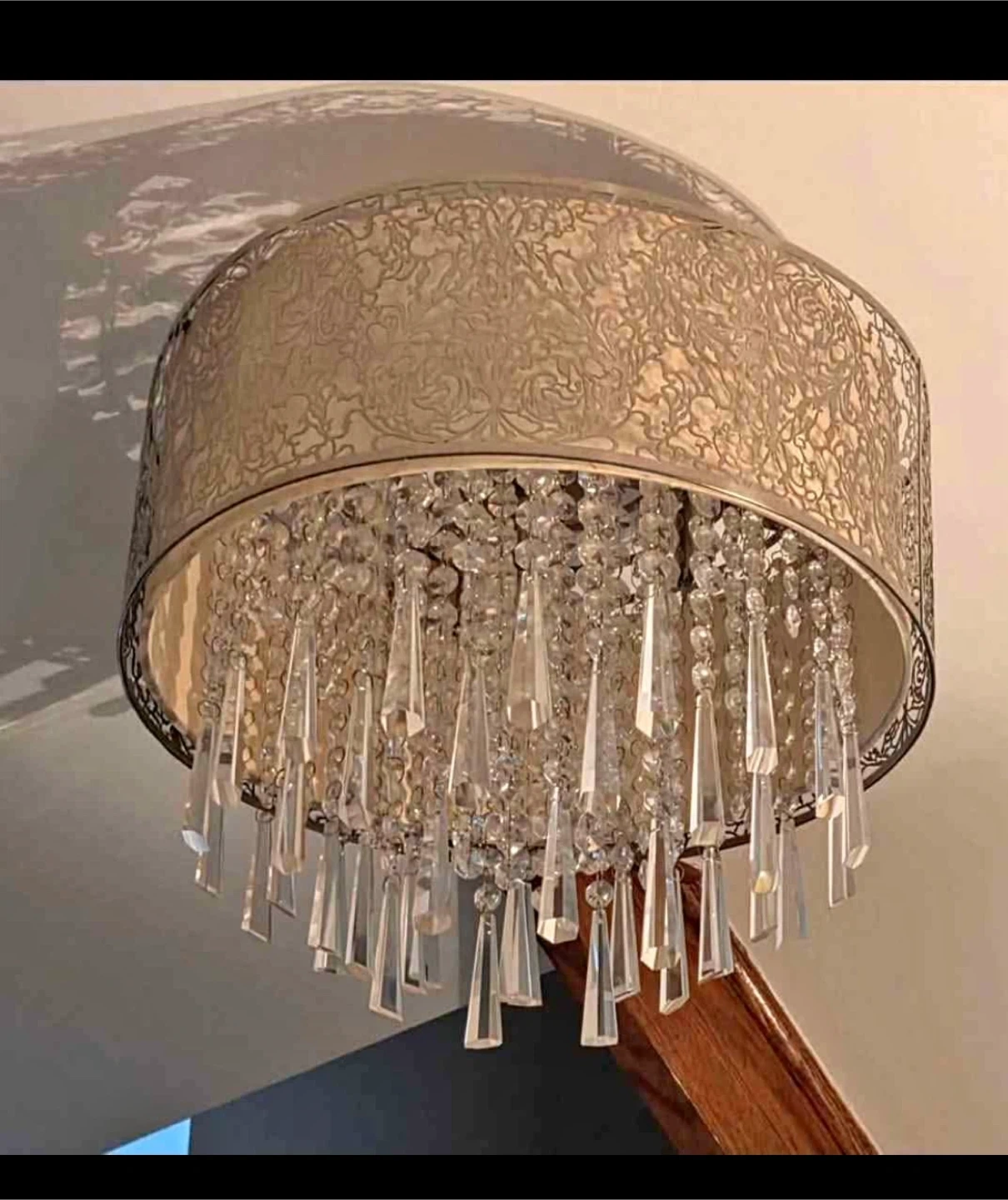 Add a touch of elegance to your home with this beautiful crystal chandelier! The design features cascading crystals and a decorative metal frame. Perfect for a dining room or entryway, this chandelier will surely make a statement.