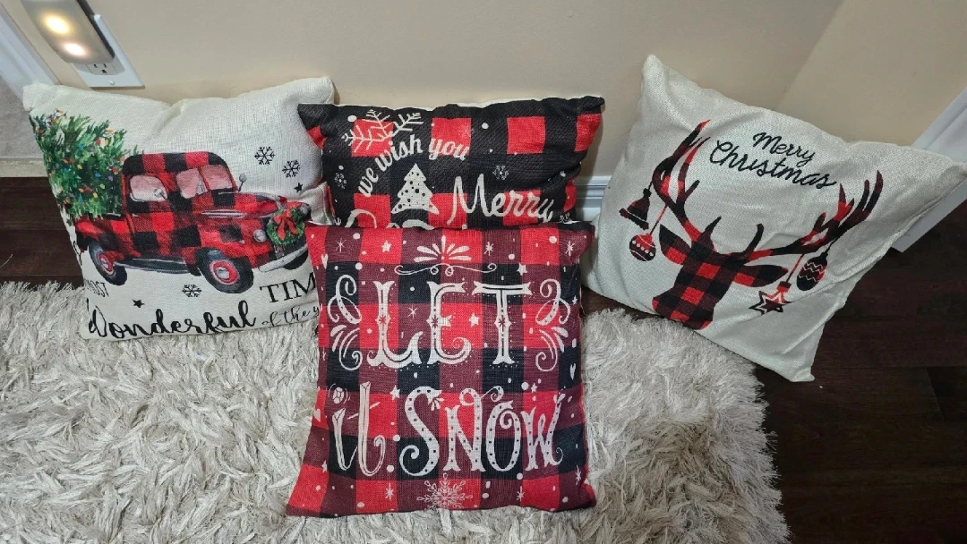 18Add some festive cheer to your home with these decorative Christmas throw pillows! This set of four includes various holiday-themed designs, perfect for adding a cozy touch to your living room or bedroom. Alll for 15