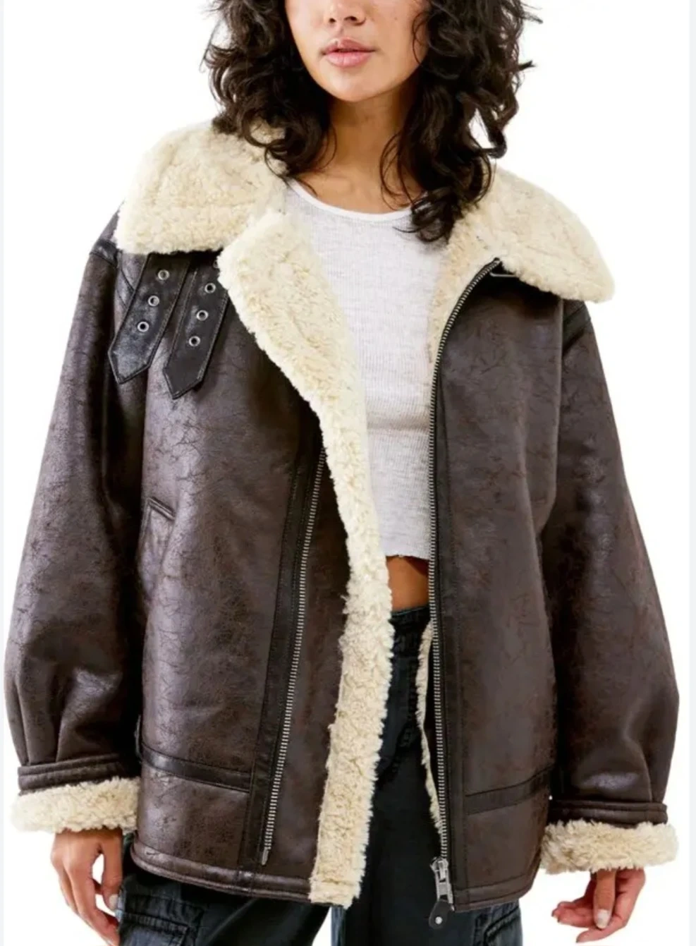 Like New Unisex BDG Urban Outfitters Stevie aviator jacket in chocolate brown. It's made of faux leather with a cozy sherpa lining. Perfect for staying warm and stylish in fall and winter. Very comfortable!