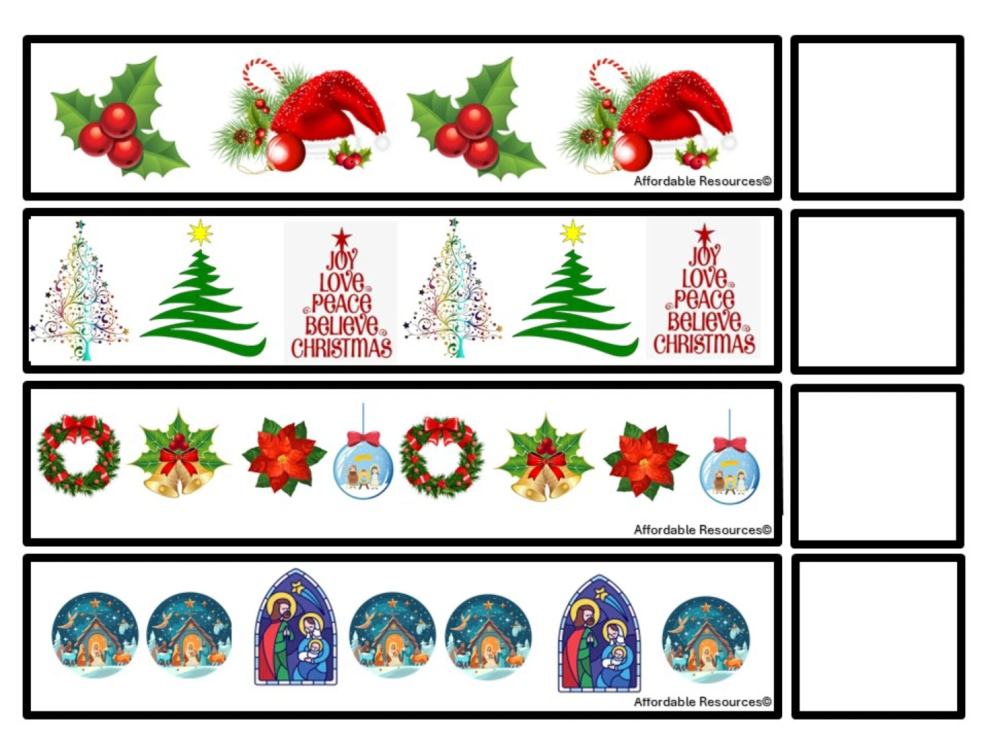 124Patterning Strip Cards - introduce or reinforce patterning to your child, preschool centres, daycares, classroom learning. Each set includes over 50 strips. With blanks included for children to make up themselves. Also the patterning identify cards and What Comes Next cards. This incredible set sells for $1.00 as PDF or google doc. Children engage in play base learning and retain learning through play. Child looks at strip, determines which card comes next in pattern, then identifies type of pattern. Lots of fun to keep your child busy! Message if interested in purchasing file. Many theme sets available: back to school, Remembrance Day, Thanksgiving, Xmas. New themes added weekly. Note Terry Fox and Remembrance Day 50% proceeds go to that specific charity.