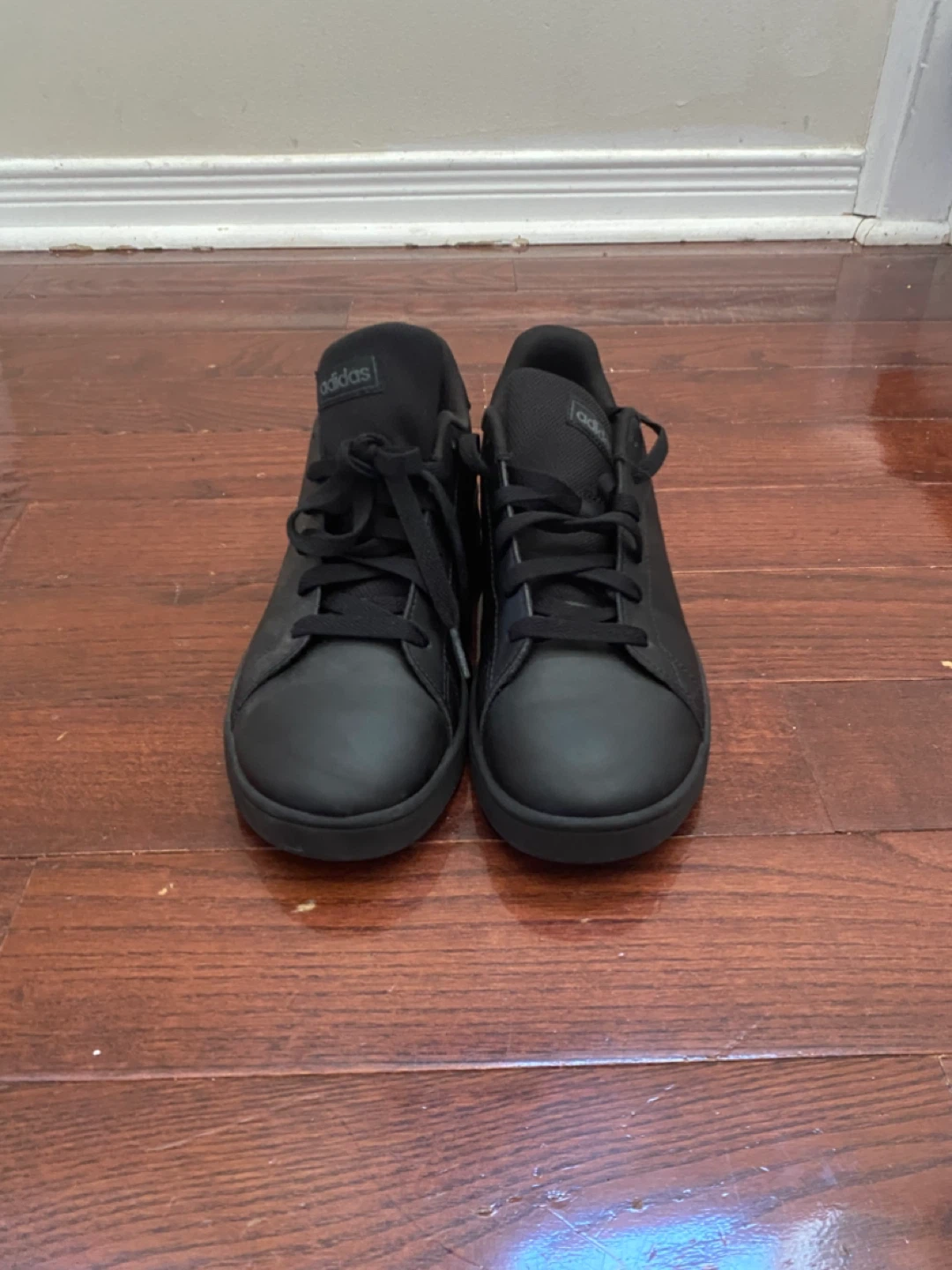 Selling a pair of Adidas Advantage sneakers in all black! These are in great condition and ready for a new home. Perfect for everyday wear or hitting the gym. Size is not indicated.