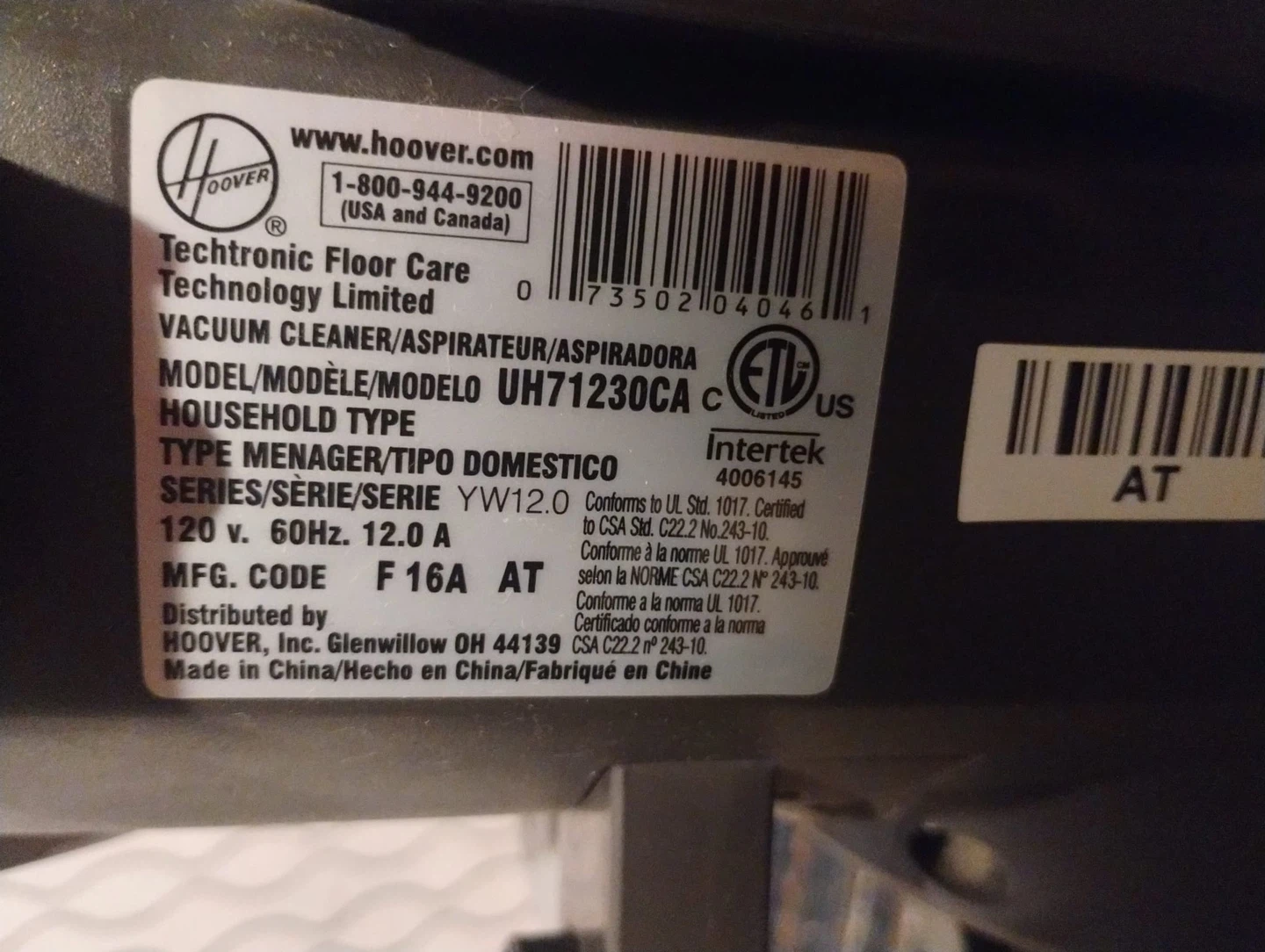 Selling a Hoover Whole House Elite vacuum cleaner! It's in a good condition . The model number is UH71230CA. It's a 12 amp vacuum with WindTunnel technology. Comes with attachments!