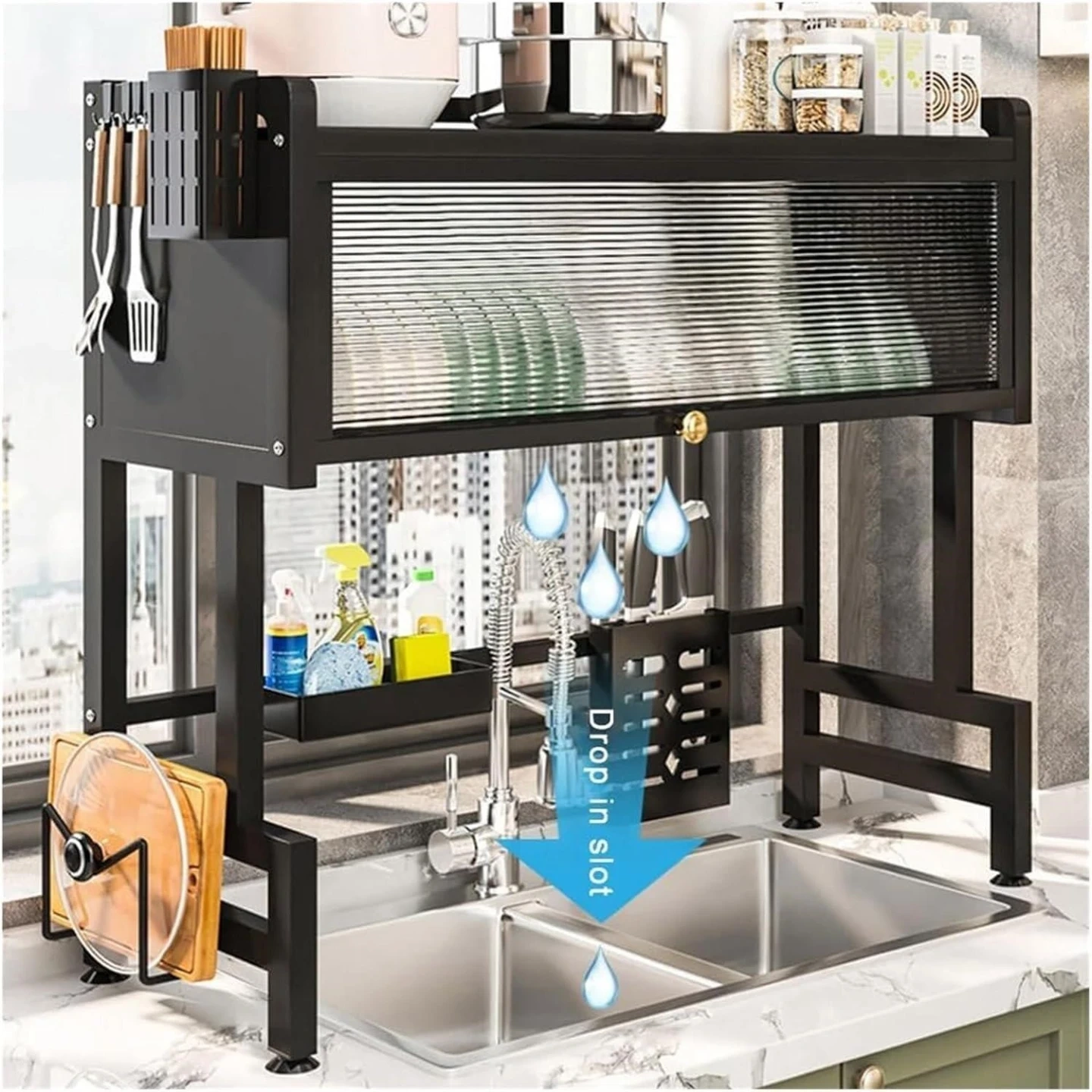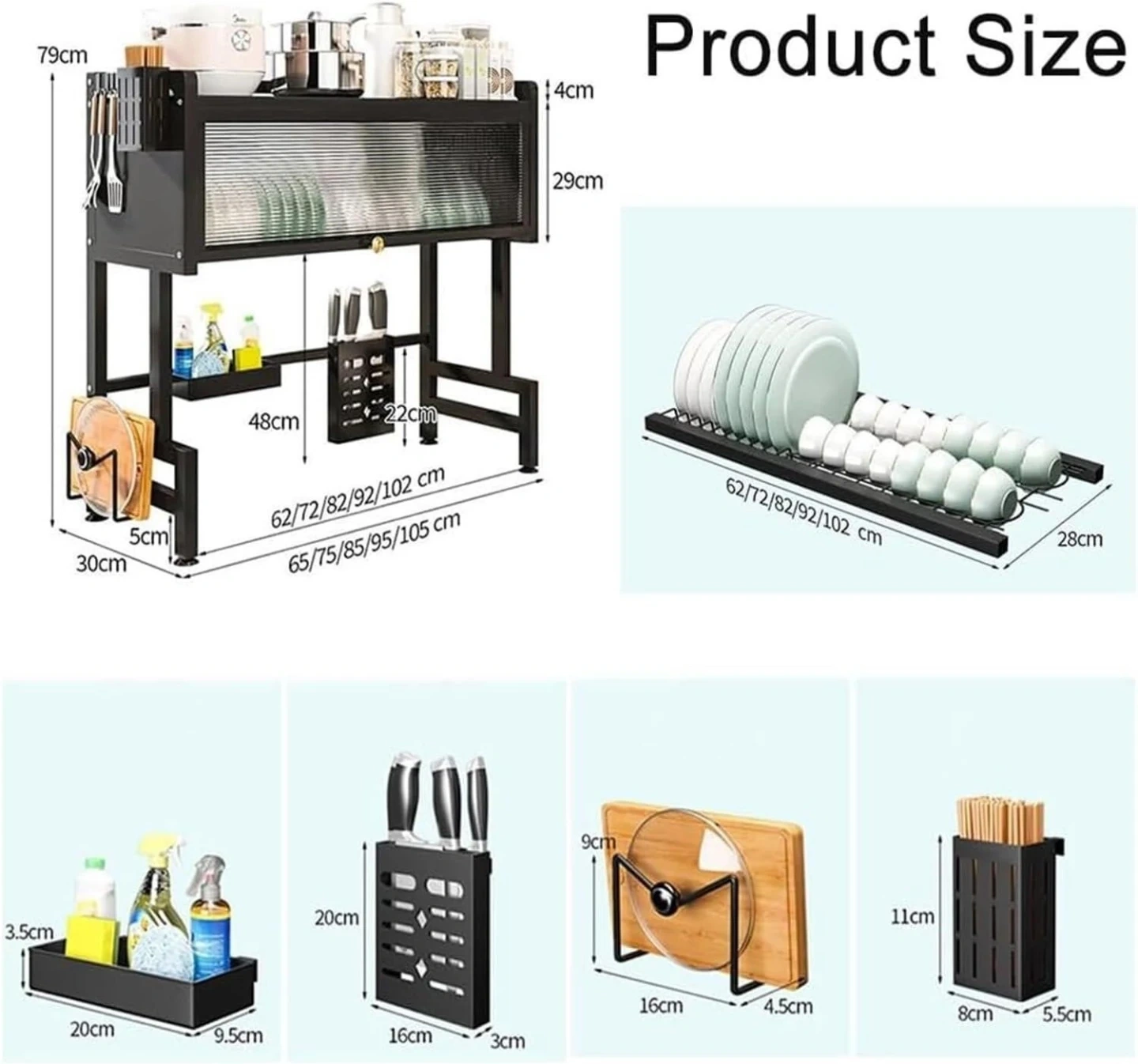Black Kitchen Dish Rack with Cabinet and Accessories