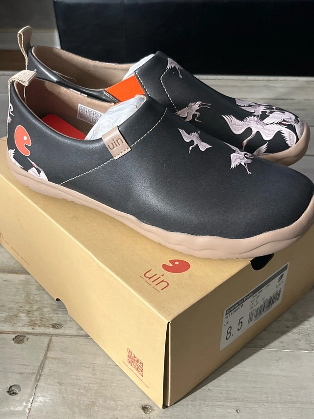 Step into unique style with these new UIN Women's Toledo Crane slip-on shoes, size 8.5, featuring eye-catching crane embroidery on a comfortable, lightweight design. These shoes combine artistry and comfort, making them a standout addition to your footwear collection. Note these shoes fit on the smaller side. Pick up in Brampton near Sheridan College