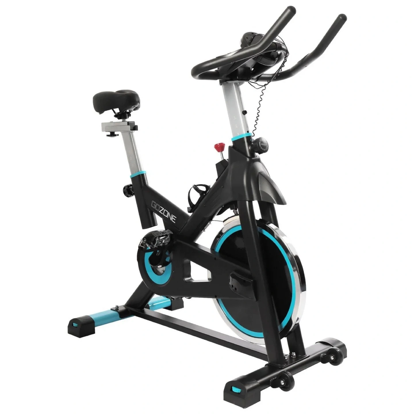 This GOZONE spin bike offers a smooth and challenging workout. It's designed for home use with adjustable resistance and seat height. A water bottle holder is included.
