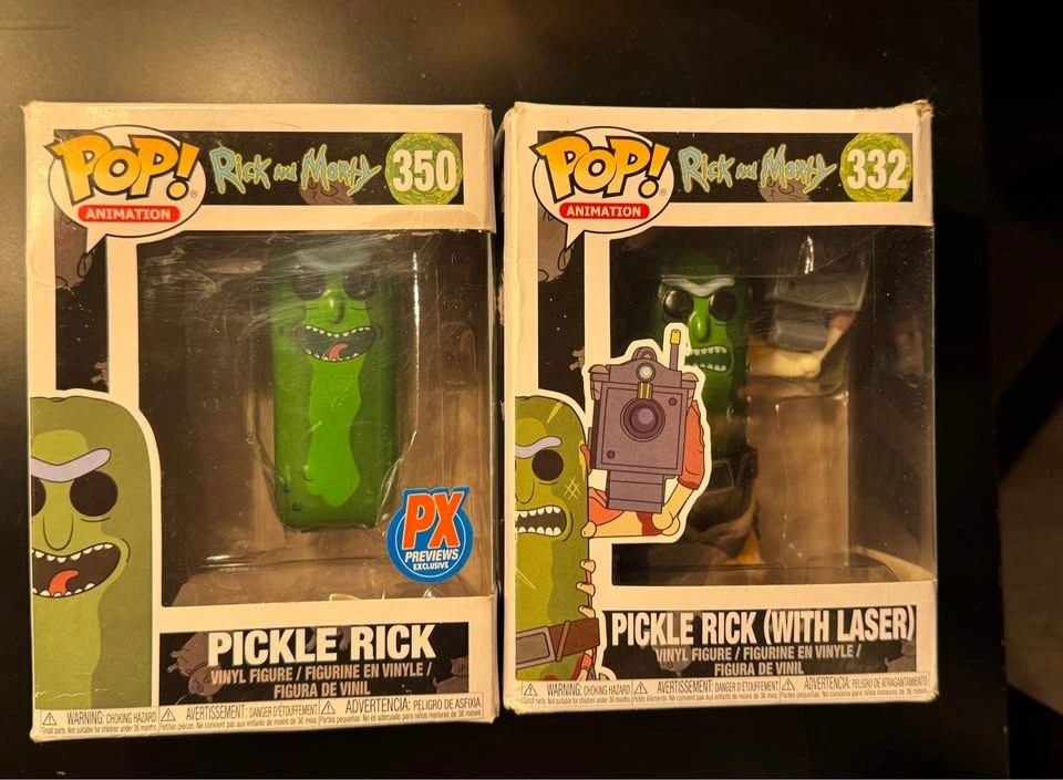 Two Funko Pop figures: #332 Rick and Morty Pickle Rick with Laser and #350 Rick and Morty Pickle Rick. Figures have never been removed from their boxes, though the boxes are in less than perfect condition. Asking $25 for both, but open to reasonable offers. Pick up in Somerset.