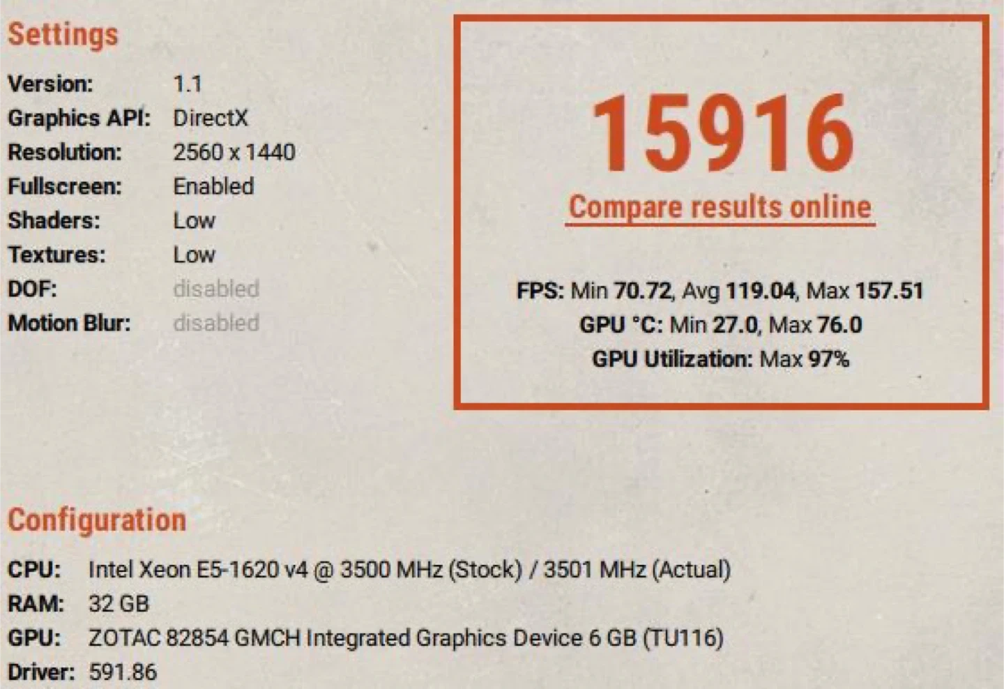 1440p Avg 119.04 FPS / Max 157.51 FPS