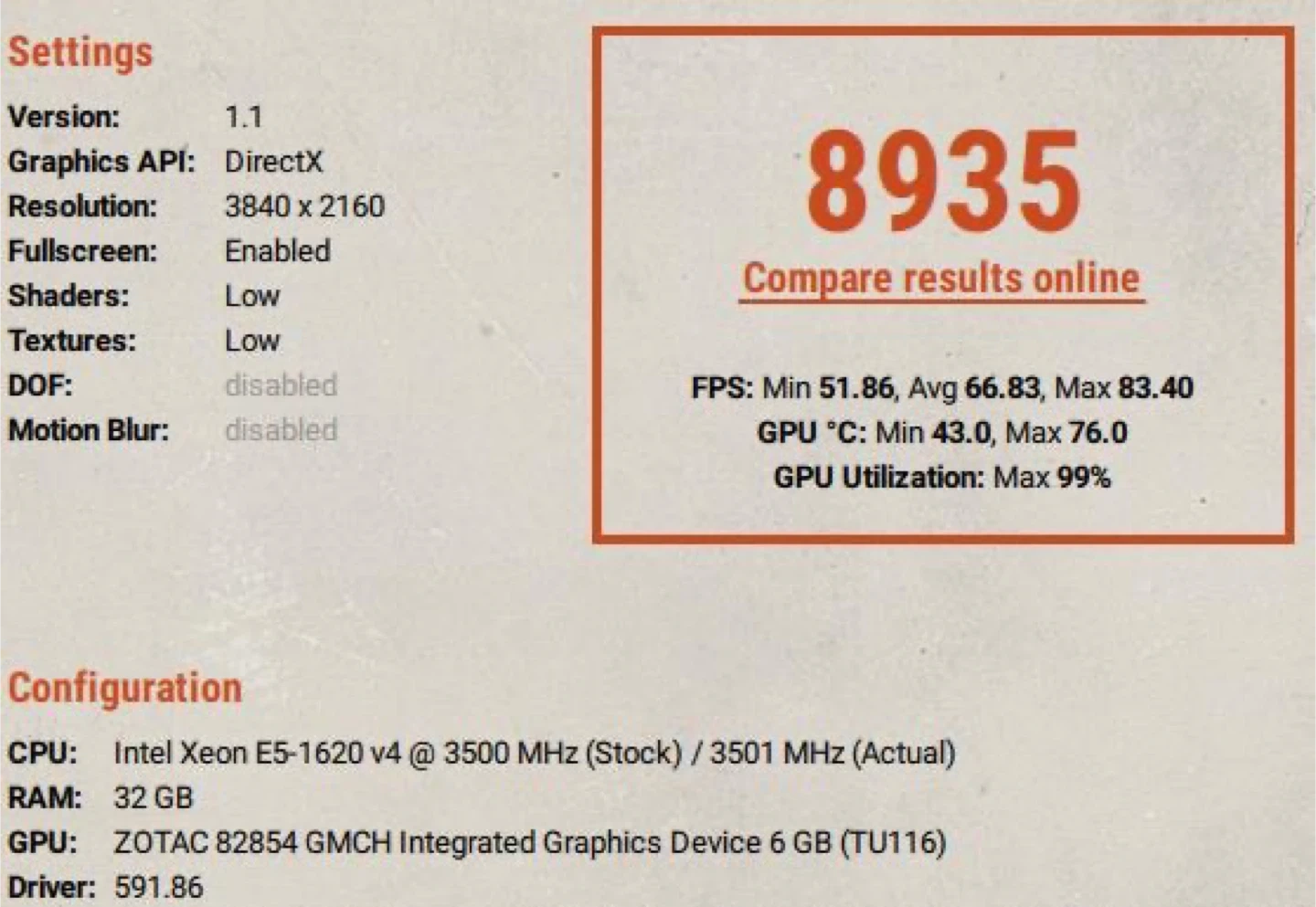 4K Avg 66.83 FPS / Max 83.4 FPS