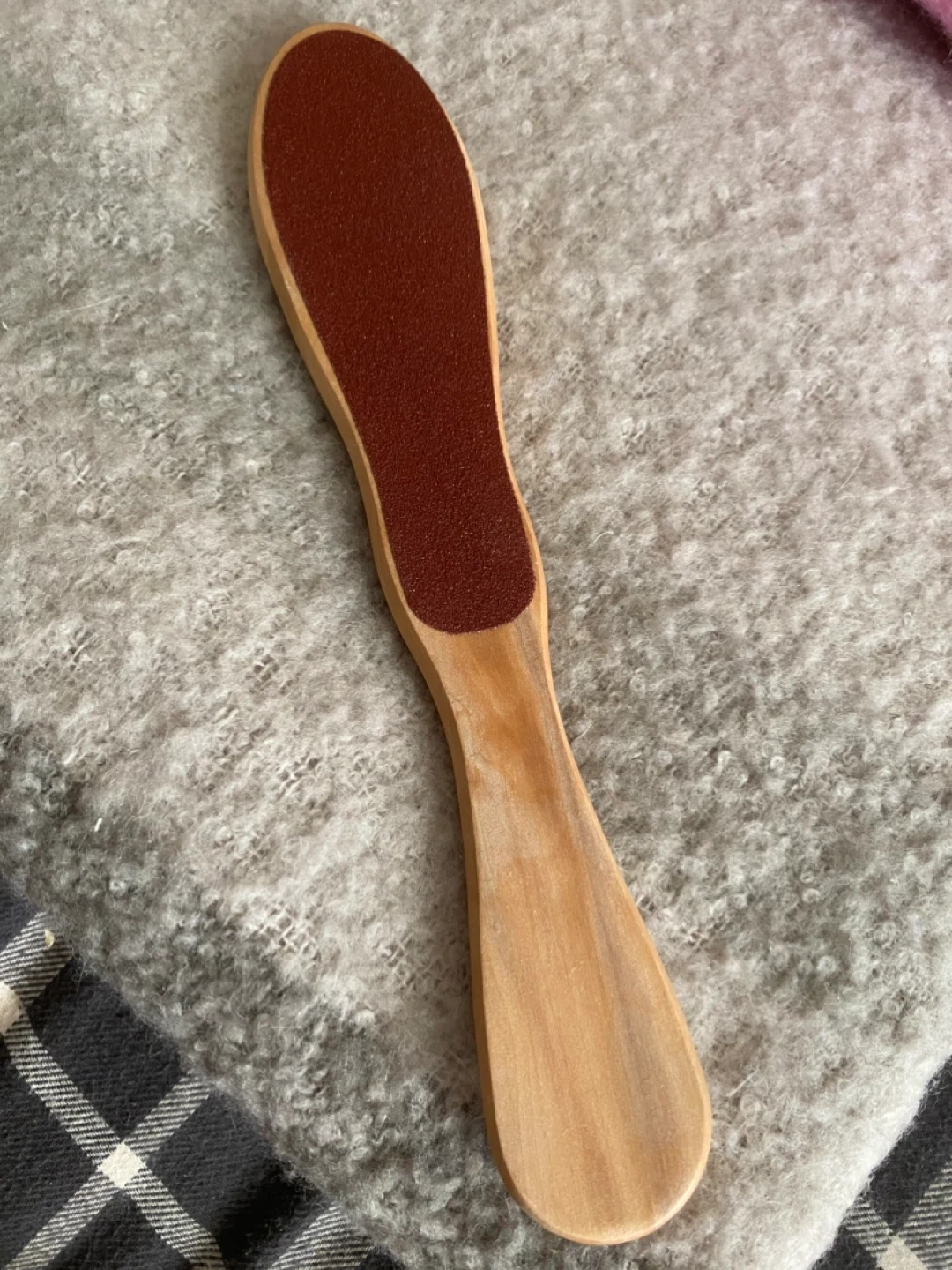 I'm selling a Silklíne Professional foot file. It's in great shape and ready to help you smooth your feet! It features a wooden handle for comfortable grip and a durable abrasive surface.