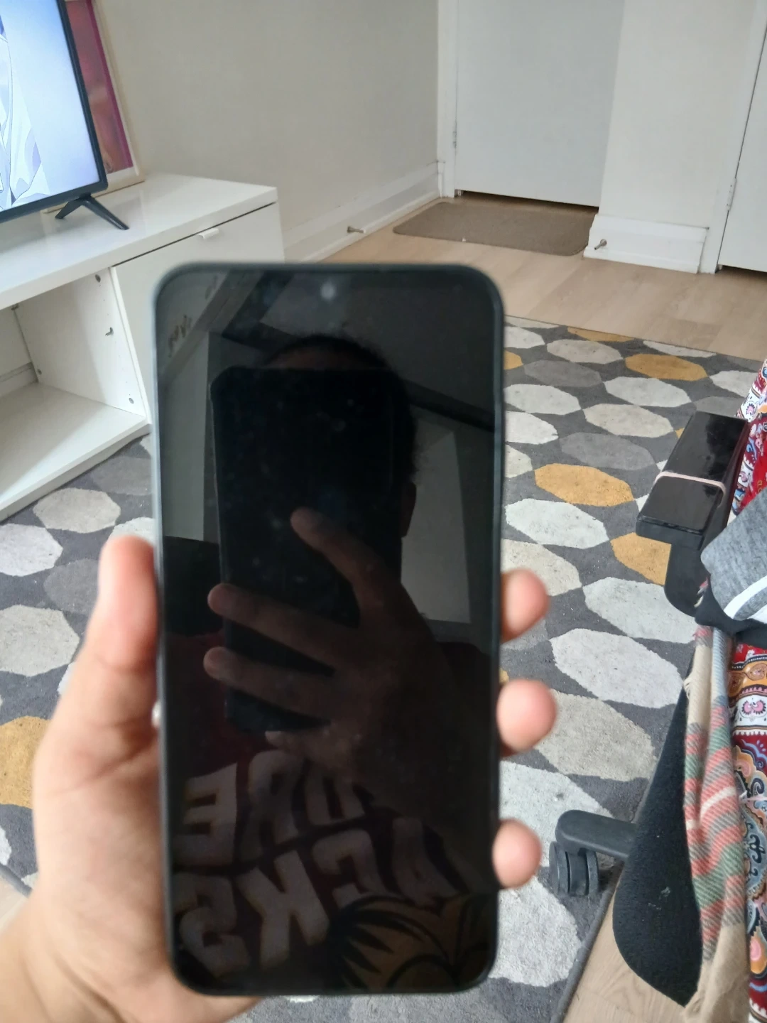 On the back of the phone the battery is swollen.