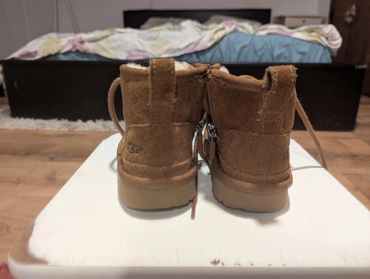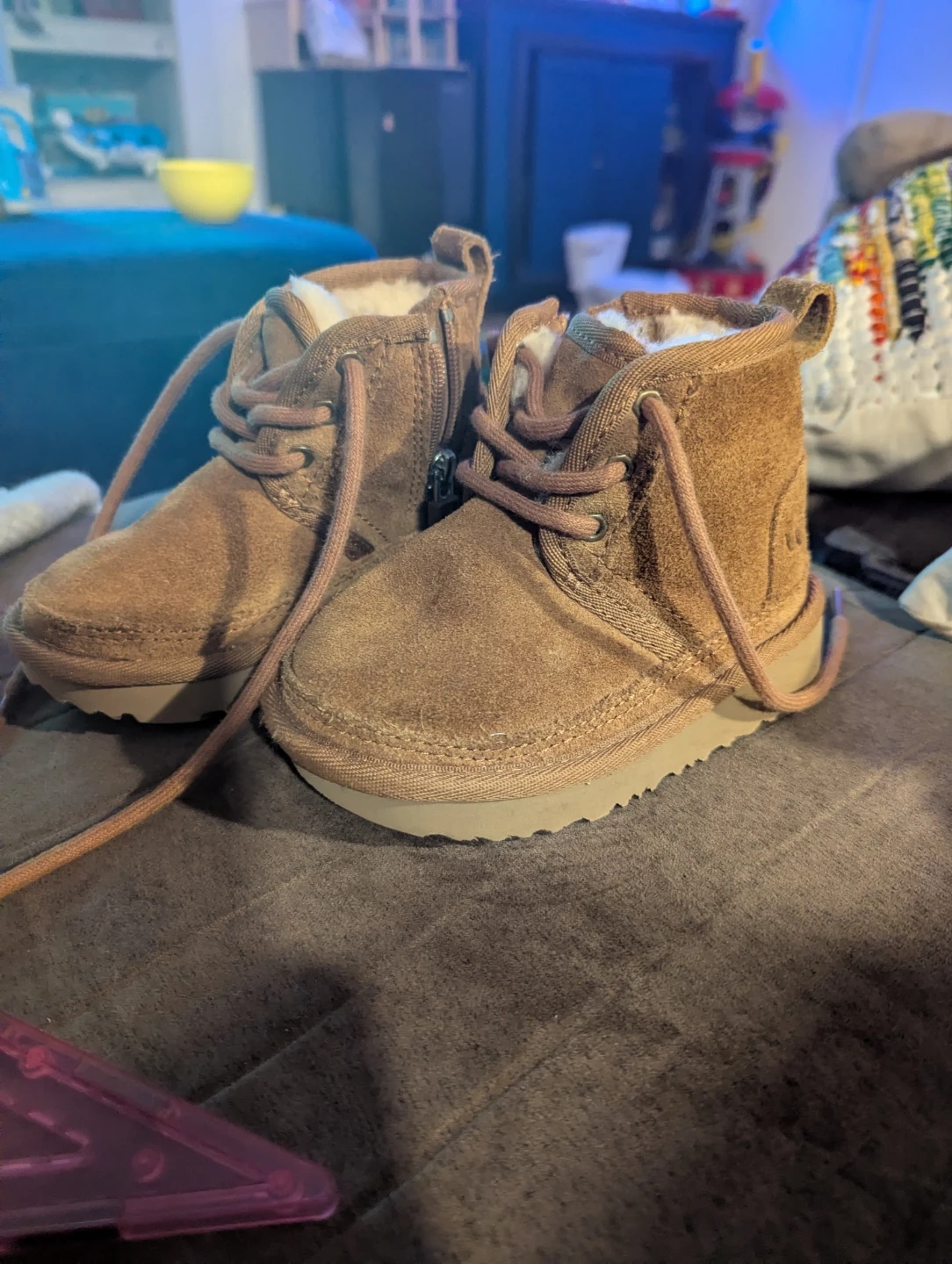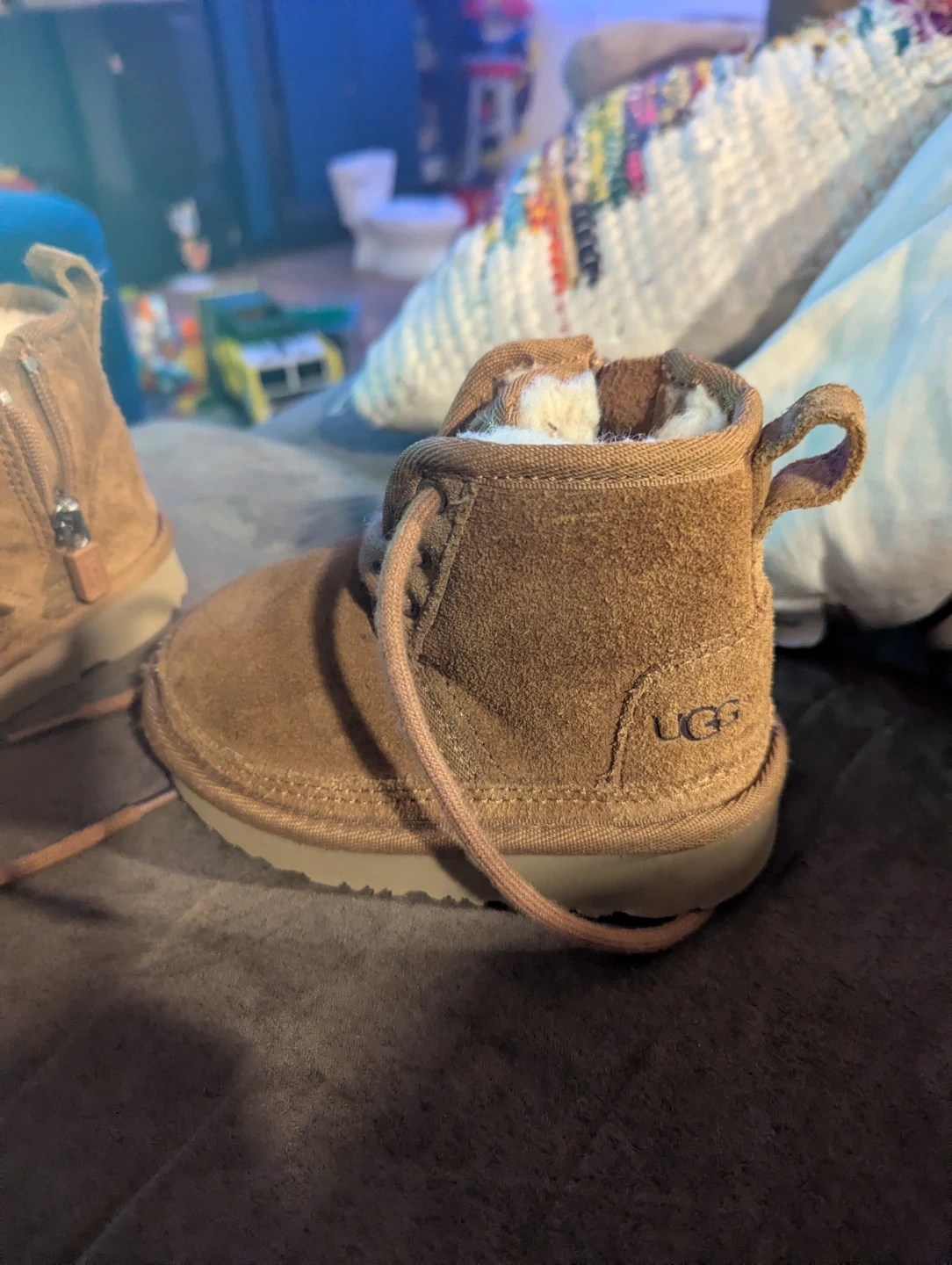 These UGG toddler Chukka boots are in great condition and ready for a new adventure! They're a classic brown color and feature a cozy lining to keep little feet warm and comfy.