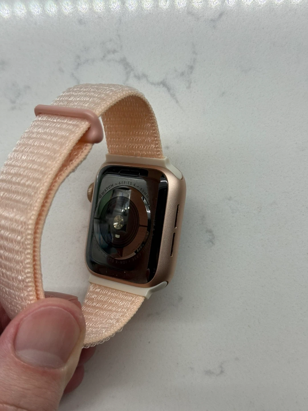 This is an Apple Watch Series 4. It's the 40mm GPS + Cellular model with a gold aluminum case. It's a great way to stay connected and track your fitness!