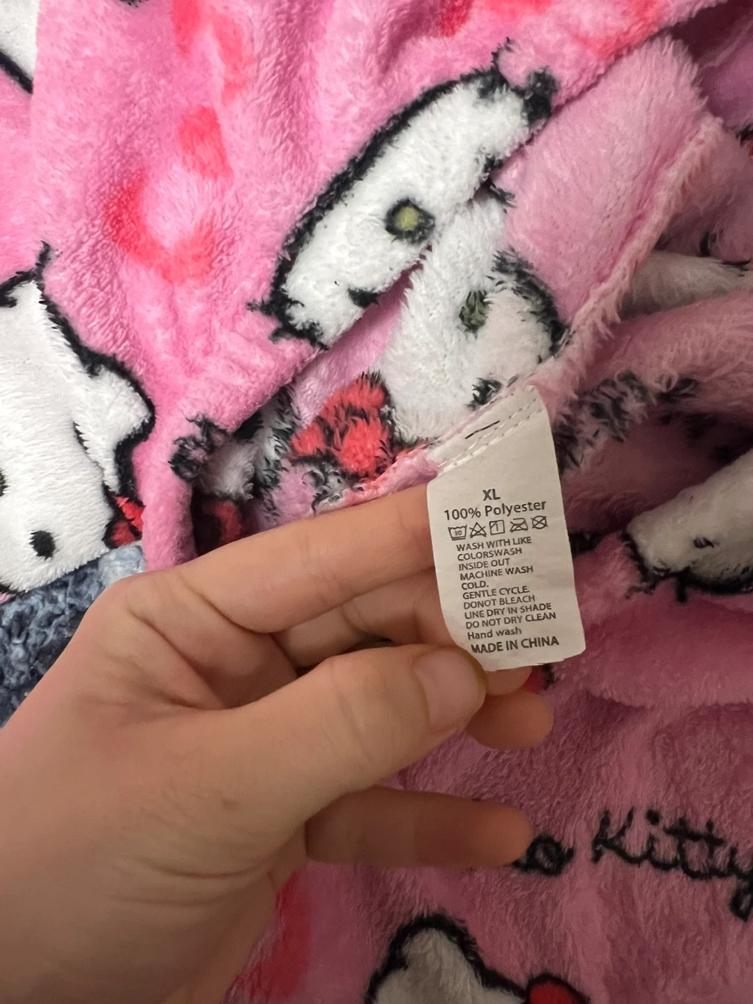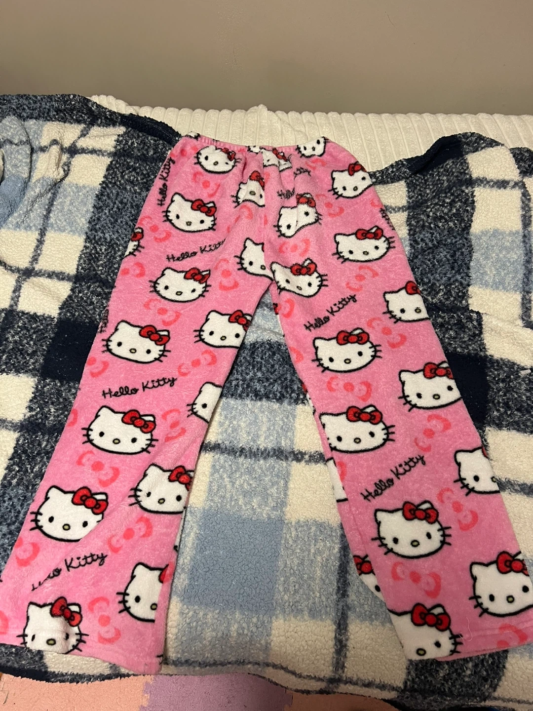 Cozy pink fleece pajama pants with a fun all-over Hello Kitty print. These pants are size XL and made from 100% polyester for extra softness. They're perfect for lounging around or a comfortable night's sleep! price is negotiable