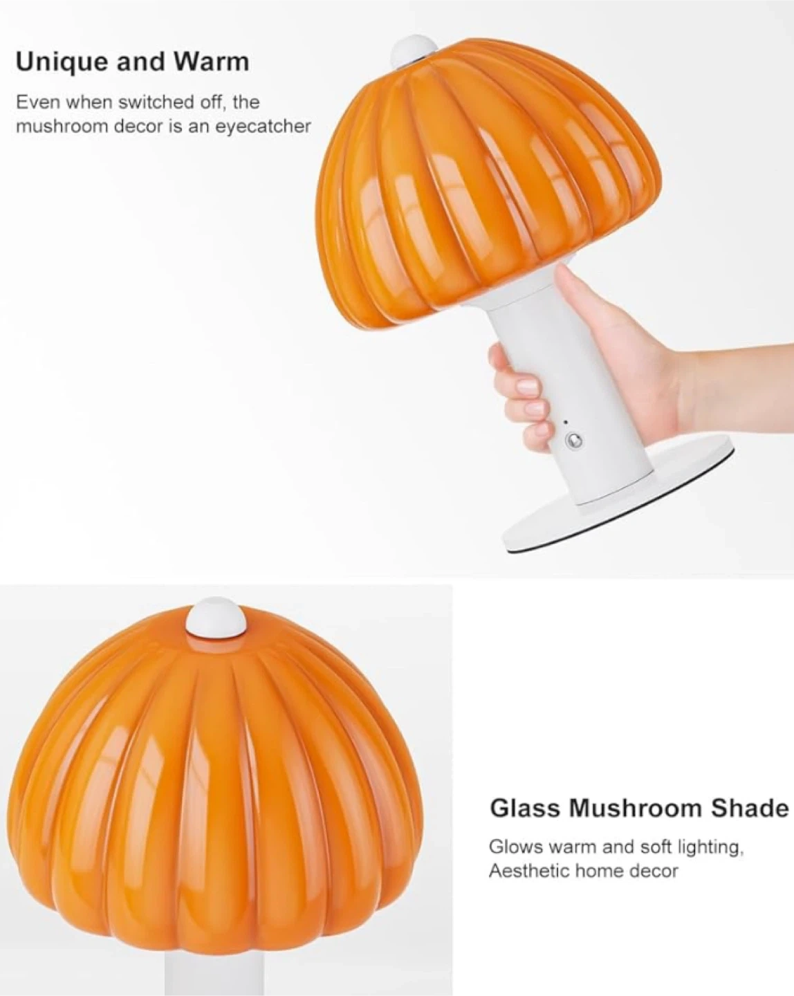 This FANHAO glass pumpkin light is a super cute bedside table lamp! It features a 3-colour dimmable setting. It's portable and cordless with a 4000mAh rechargeable battery.