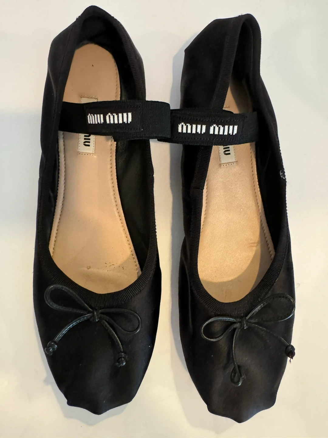 Miu Miu Black Satin Ballet Flats with Strap - Size 38.5