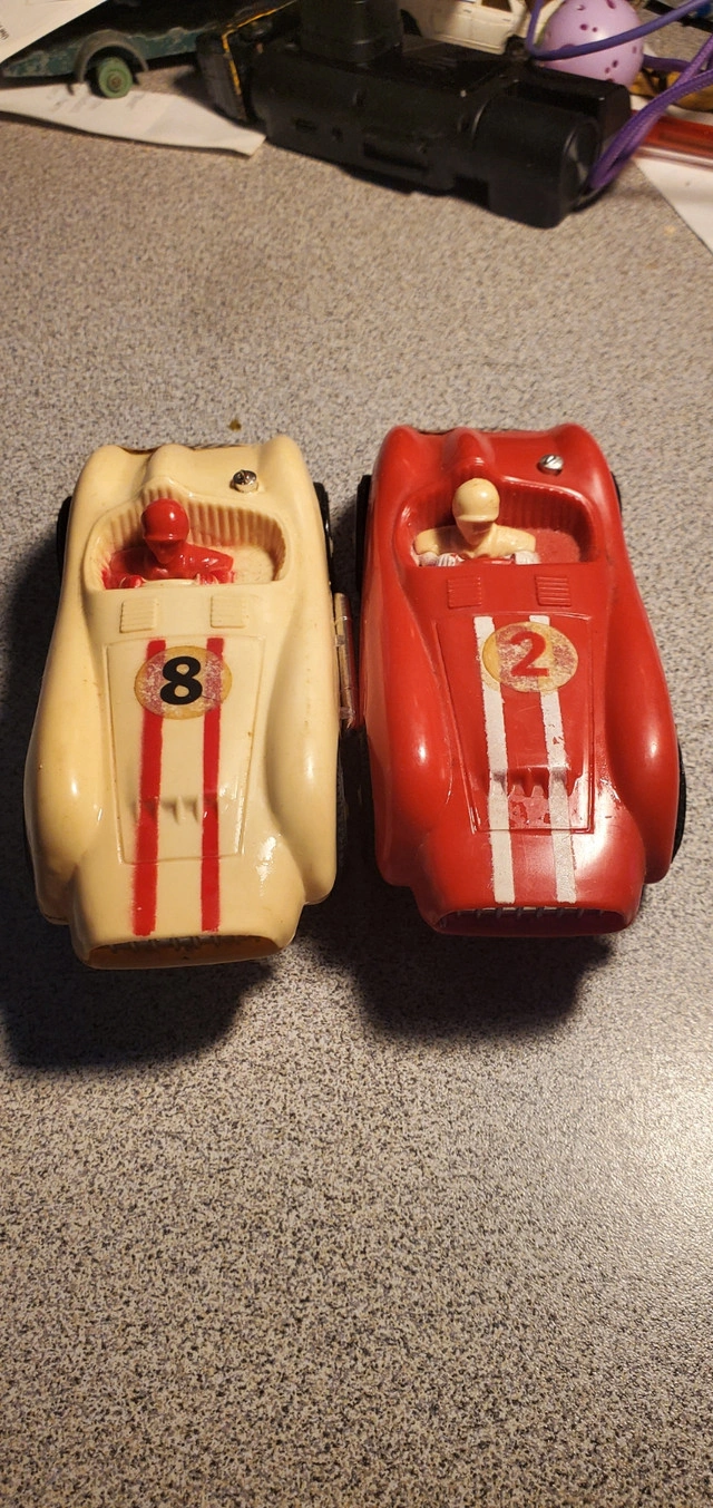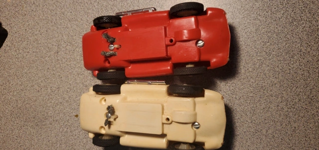 Pair of Vintage 1960s Eldon 750-15 Ferrari Slot Car 5" Plastic Race Car. Tested working and in good condition. OPEN TO ANY AND ALL TRADE OFFERS, could be anything. Pick up Sarnia Rd And Western Rd Area.