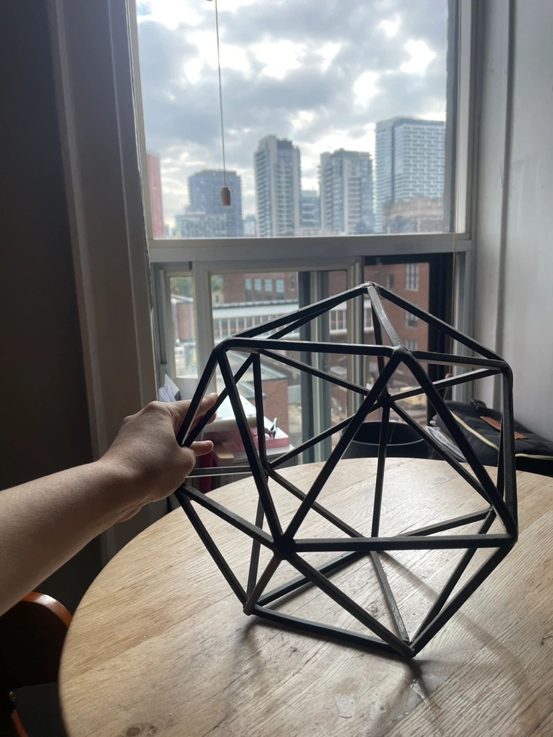 Selling a cool geometric metal sculpture, perfect for adding a modern touch to your space! It's in great condition and would look awesome on a shelf or table