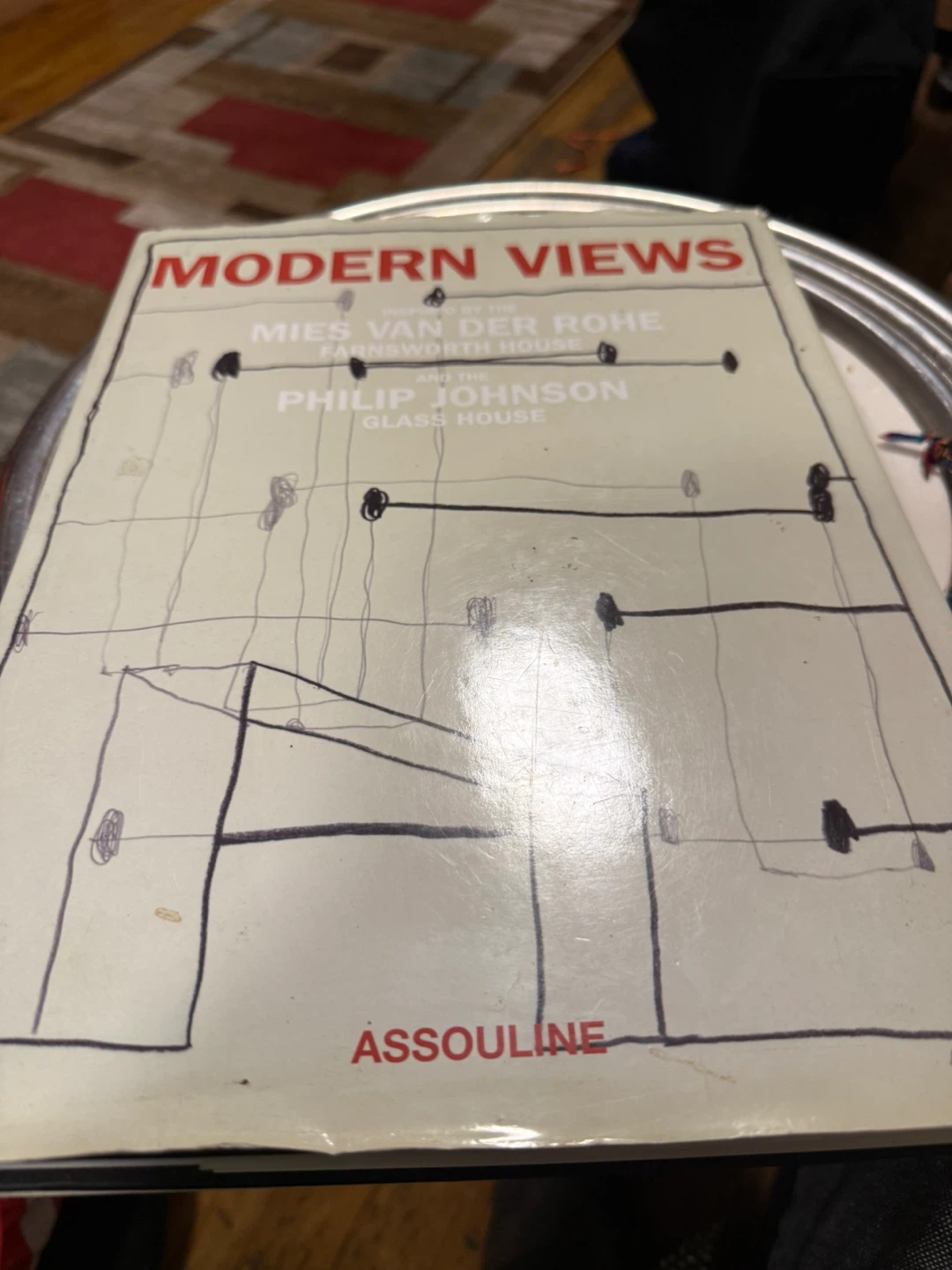 Great book by your sofa ๐๏ธ cost $280 Modern Views by Assouline. It is a project to benefit the Farnsworth House and the Glass House. The front cover is by Al Taylor and the back cover is by Paula Scher.