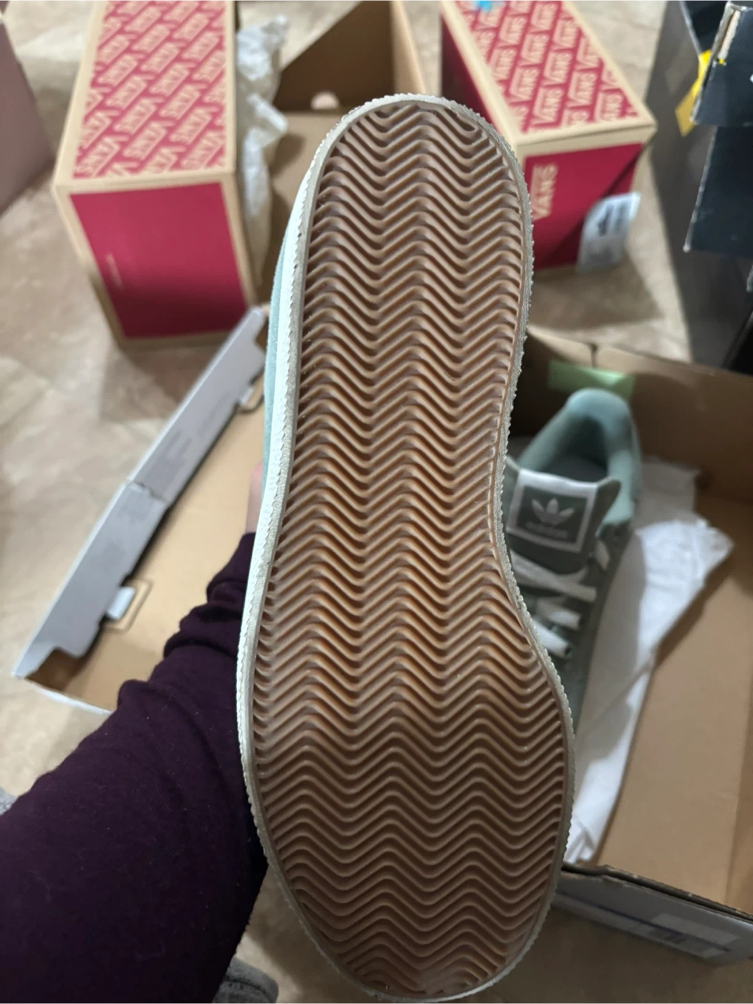 Selling a pair of Adidas green suede sneakers! They come with the original box. The shoes are in great condition and ready for a new home