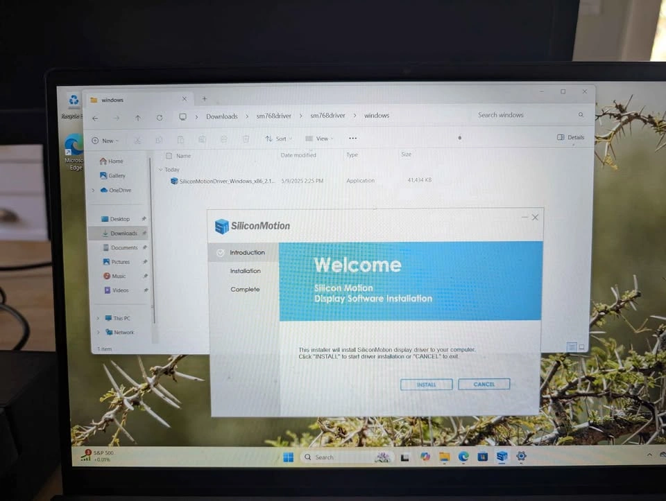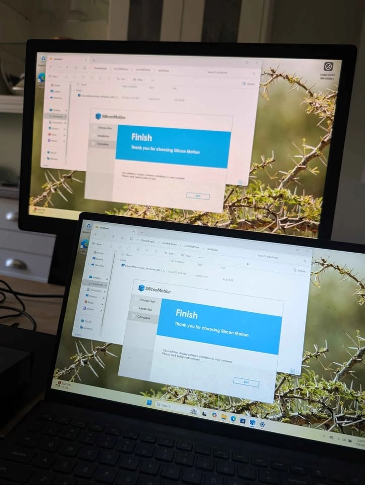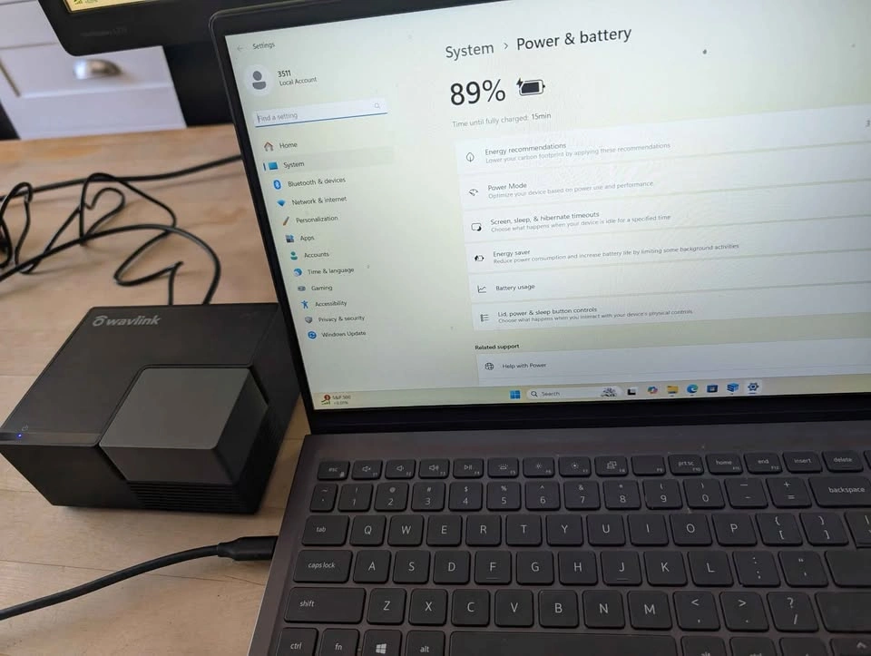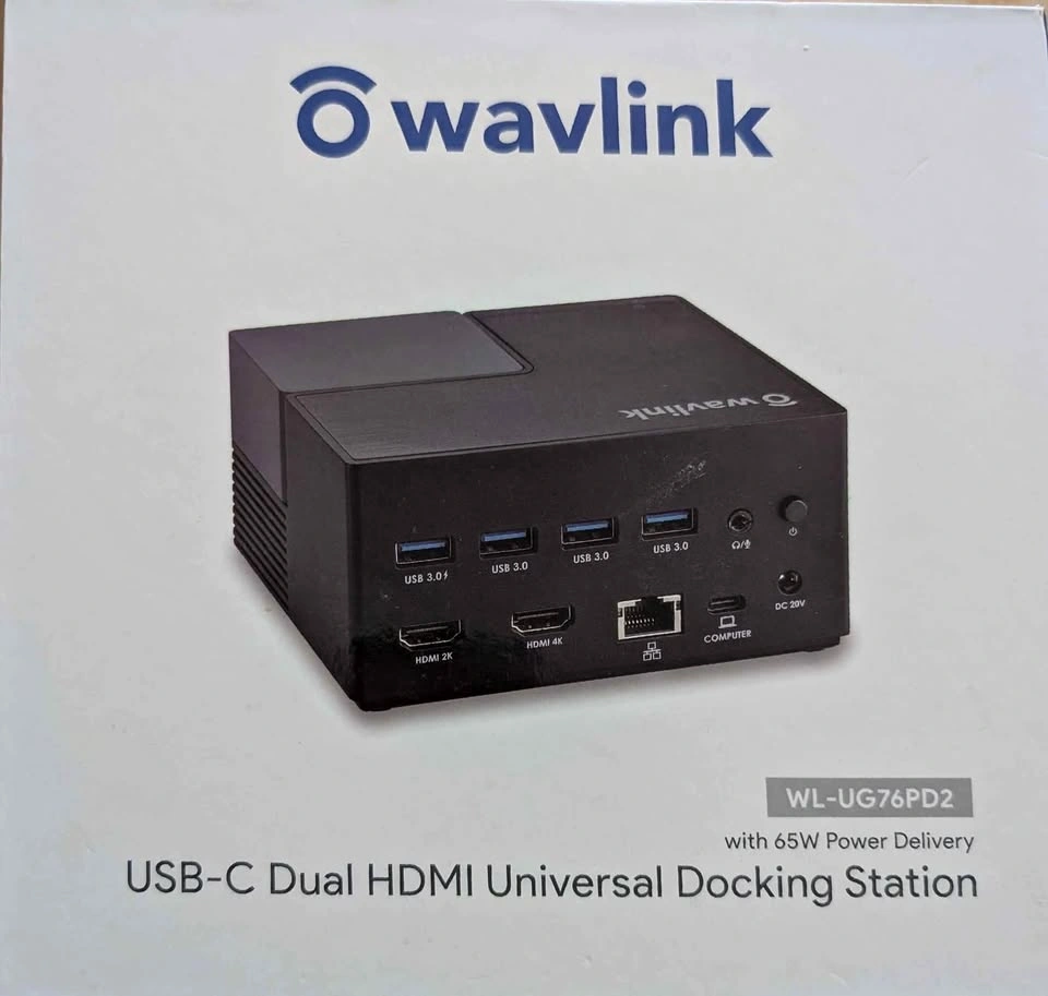 Wavlink USB-C dual HDMI universal docking station. You will need to download the drivers from their website in order to be able to use the external monitor. It will charge your laptop with 65W power delivery.
