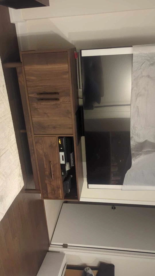 Selling a lovely wooden TV console. It features a cabinet with doors and a drawer for storage, perfect for keeping your entertainment area organized. The console is in great condition and has a beautiful, warm wood finish that would complement any living room decor