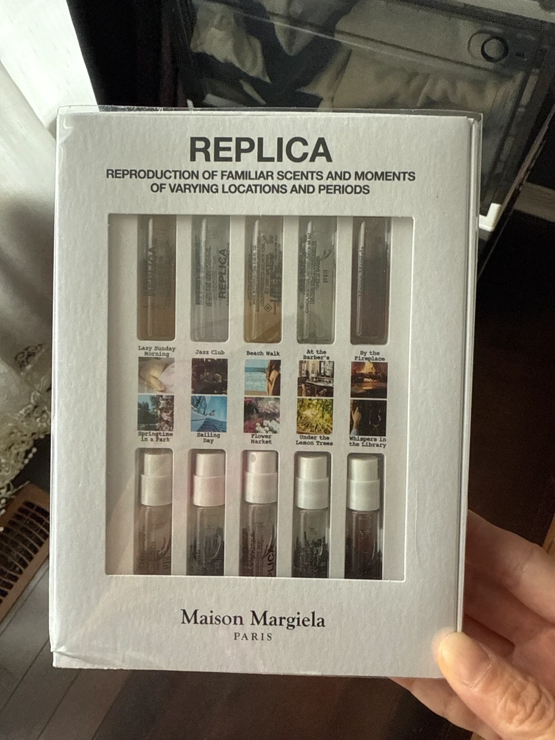 Selling a Maison Margiela REPLICA Discovery Set! It includes a variety of familiar scents and moments, such as Lazy Sunday Morning, Jazz Club, Beach Walk, and more. Perfect for discovering your favourite REPLICA fragrance!