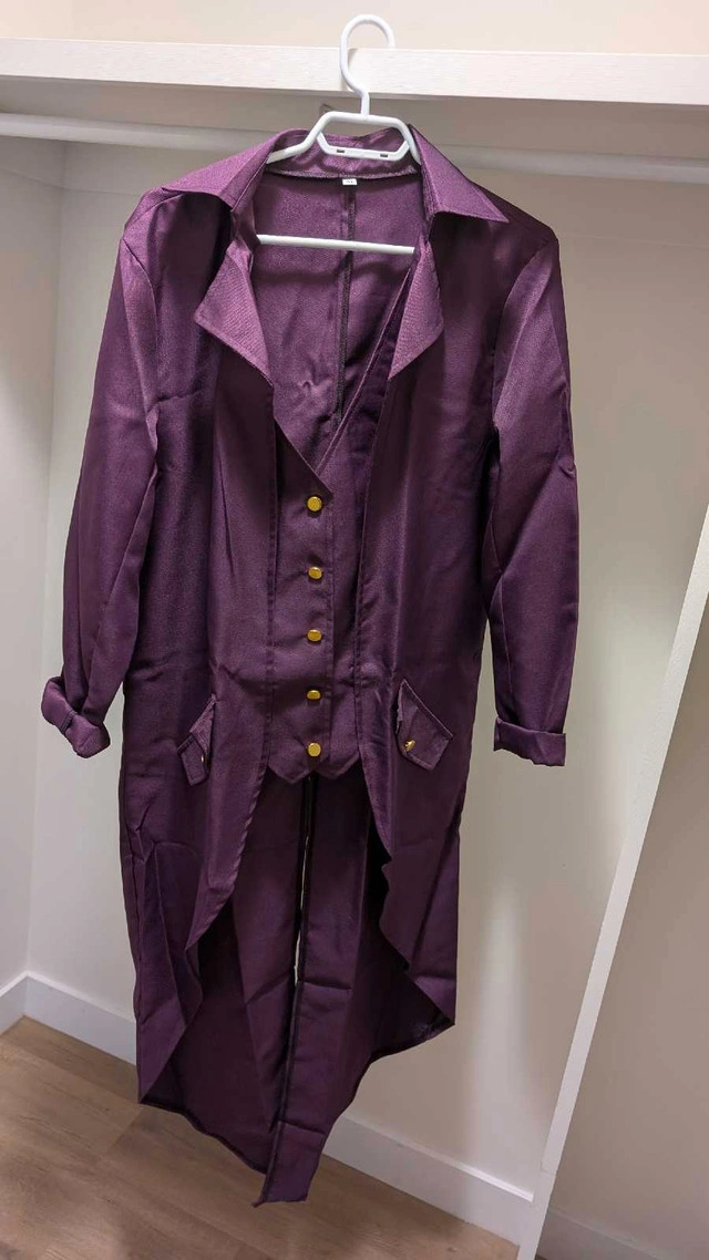 Buy & SellPurple Victorian Halloween JacketPurple Victorian Halloween Jacket$20Used for a costume, worn once. Buttons on top lapels were removed for aesthetic purposes. For Sale By: OwnerWHERE TO MEETCheck LocationView MapSELLERMason LRitchie100 reviews0 chats·0 favorites·4 views