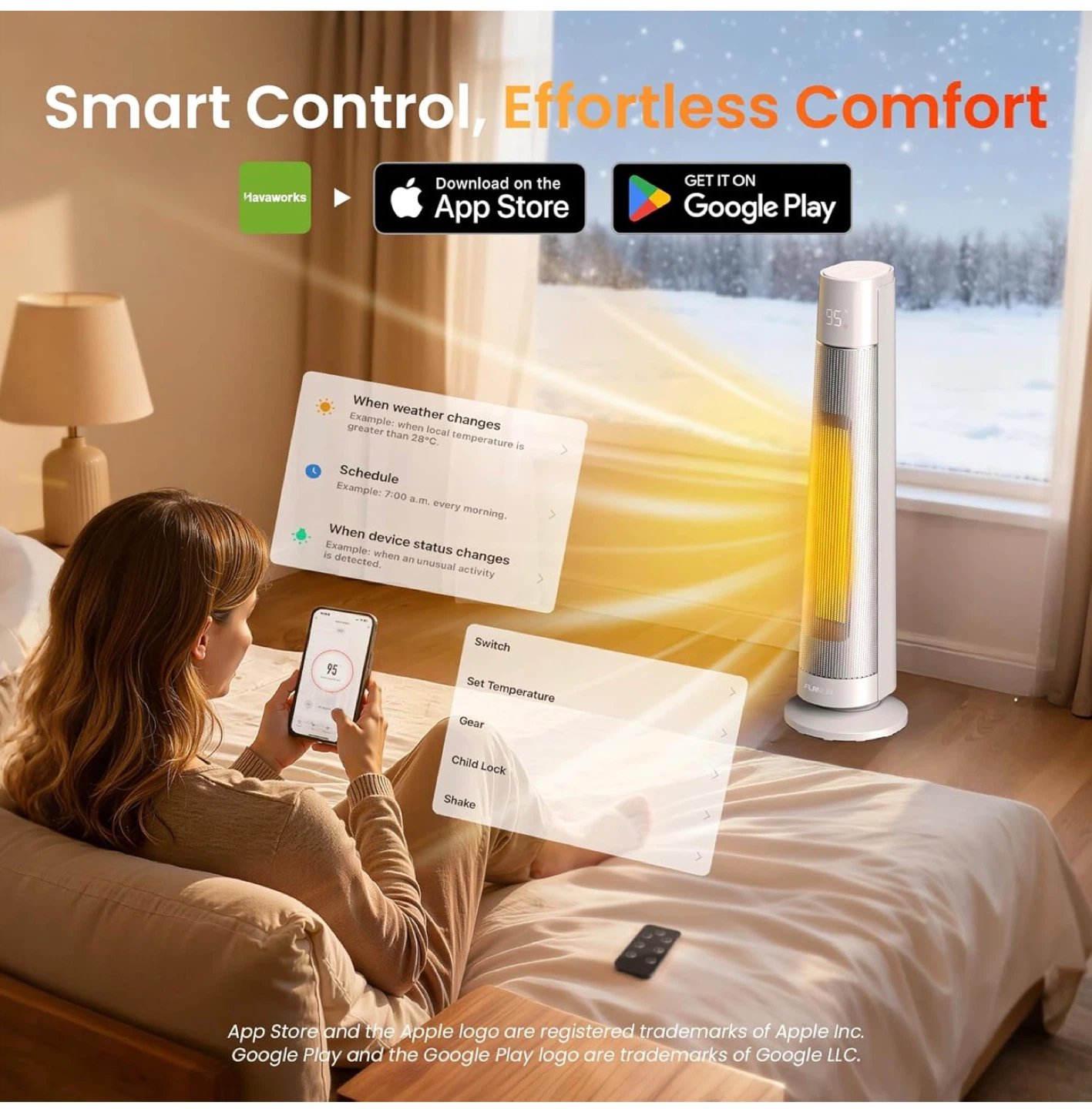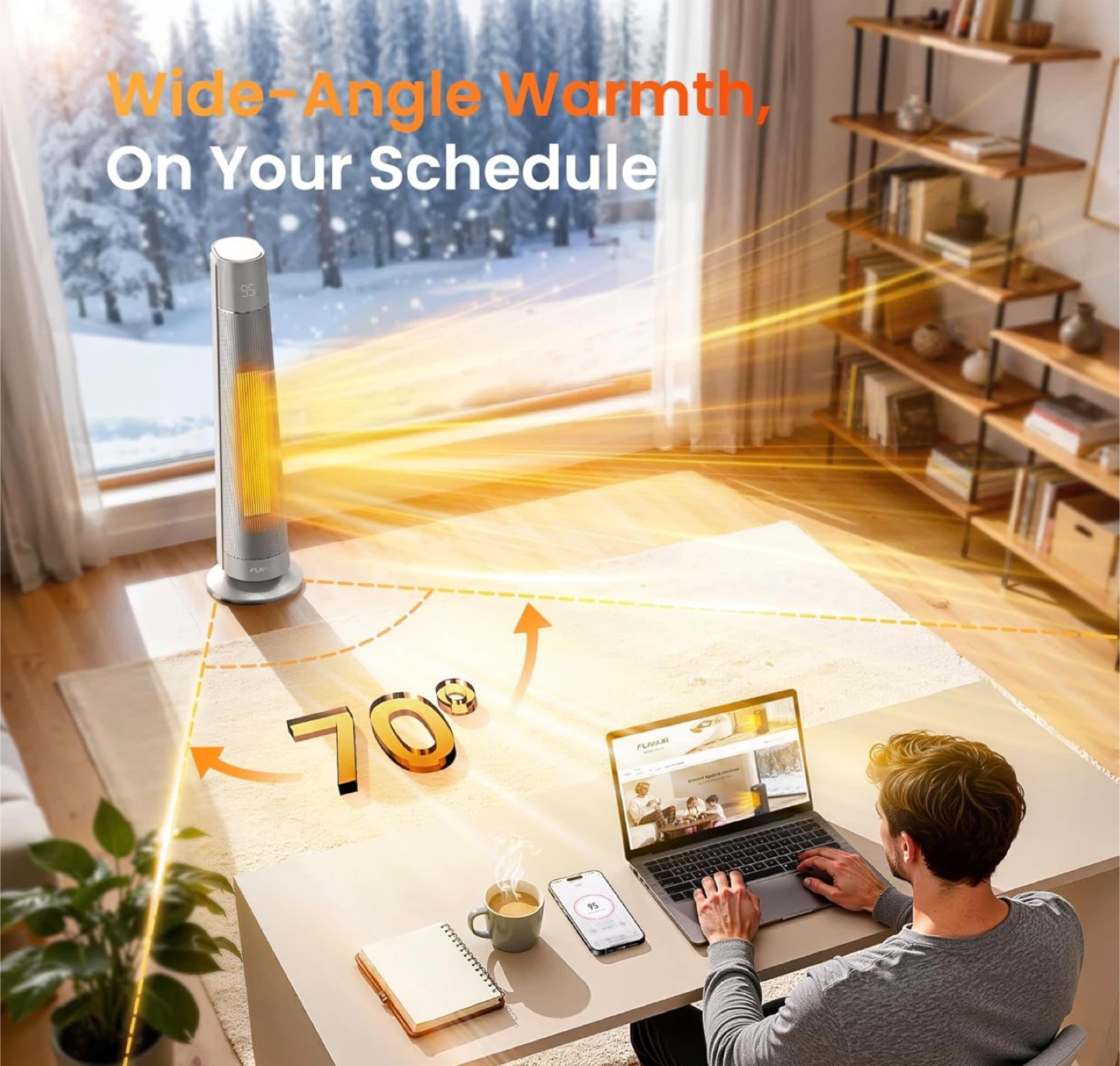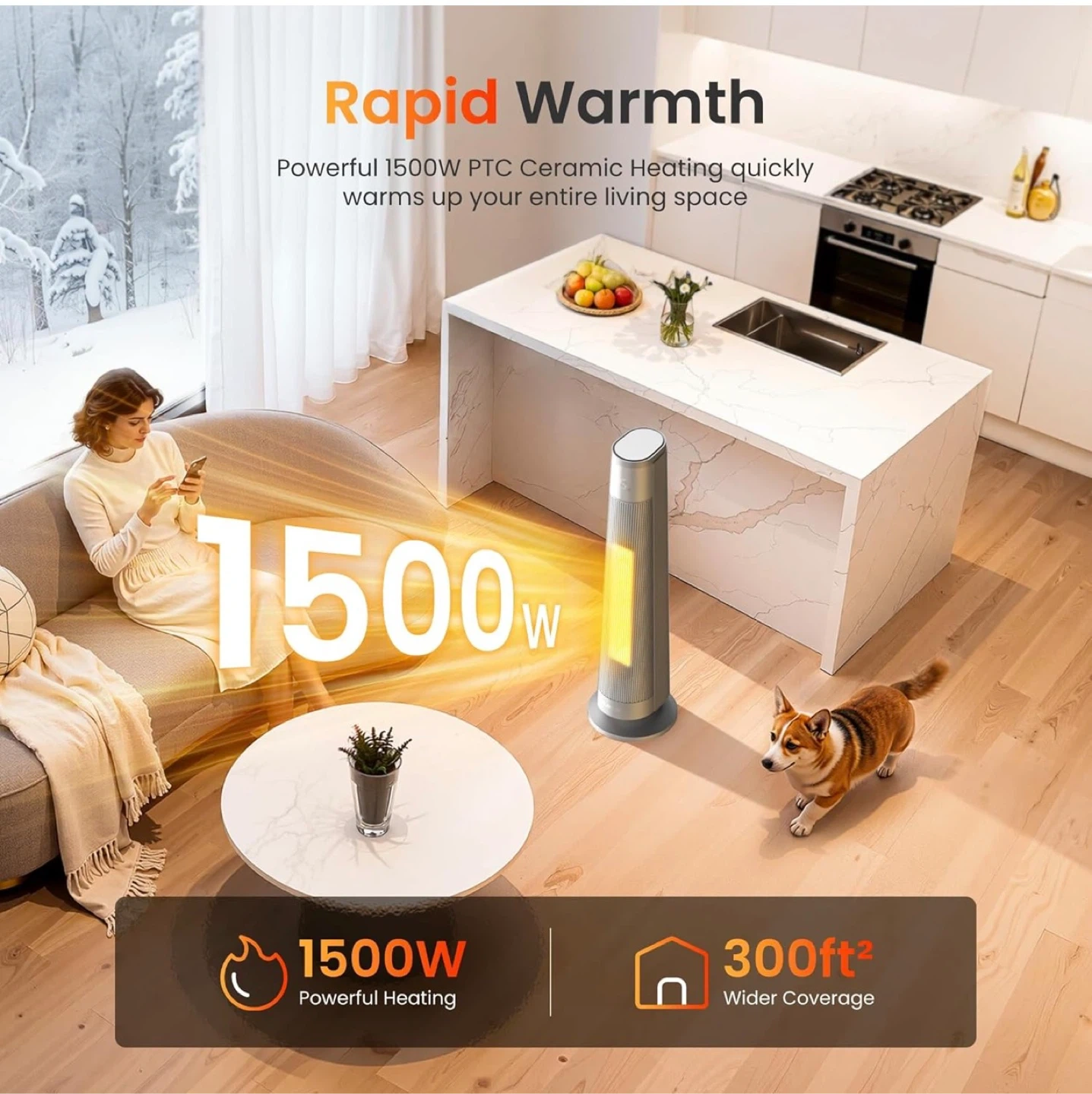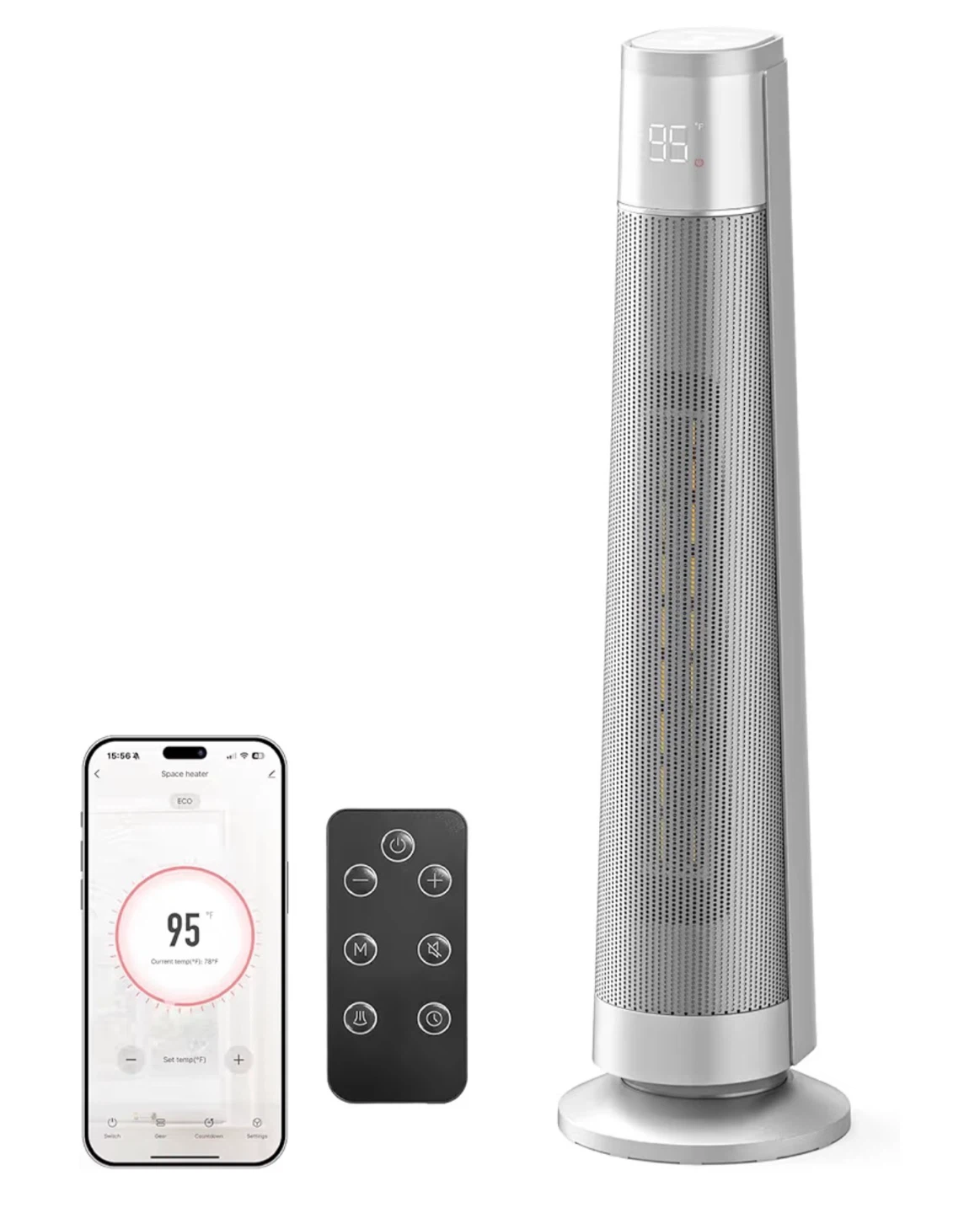 1500W PTC Ceramic Smart Space Heaters for Indoor Use, Portable Heater with Remote & App Control for Large Room, Office, ECO Modes, Safety Protection, 70° Oscillation, 12H Timer, Silver,