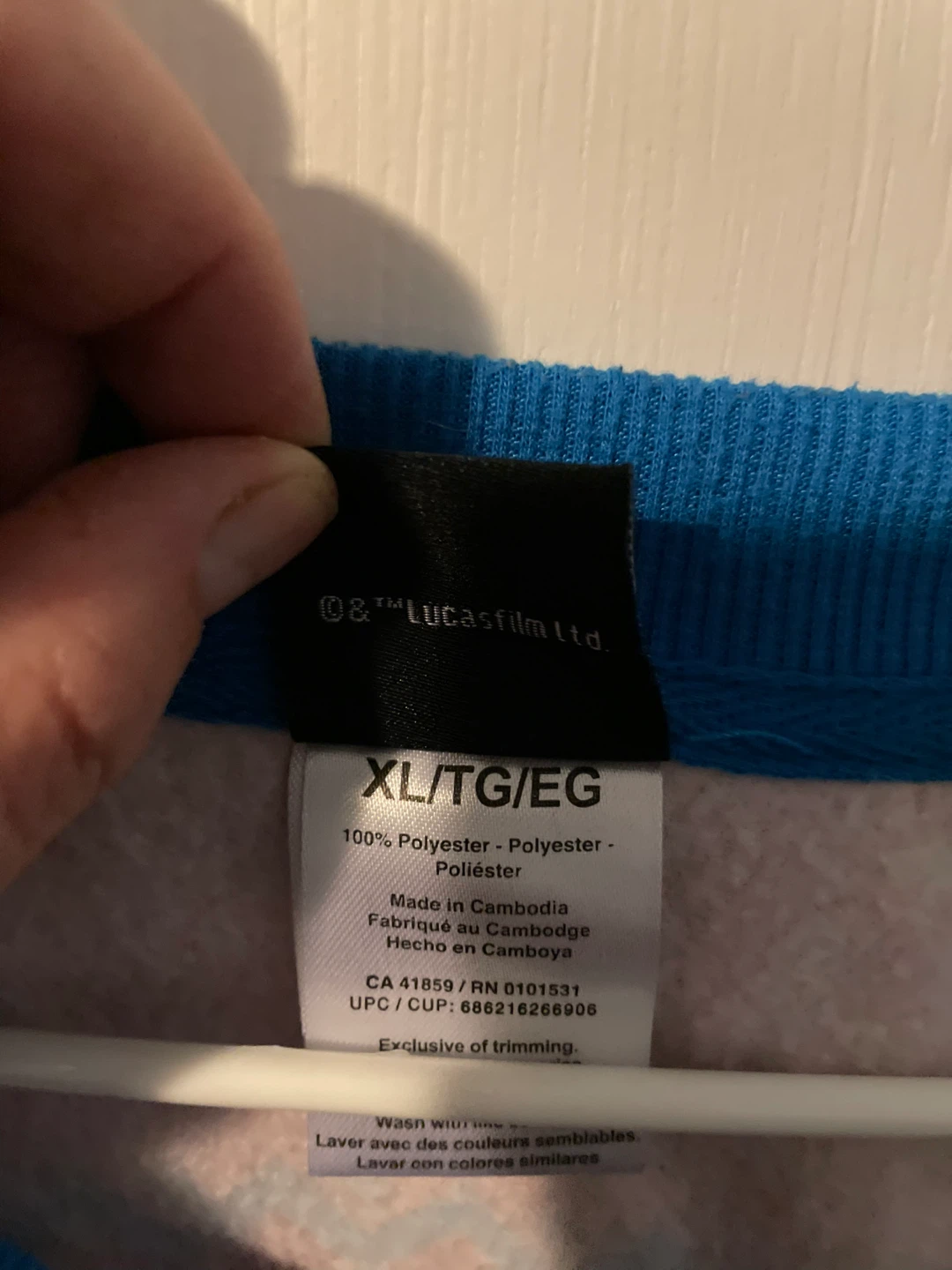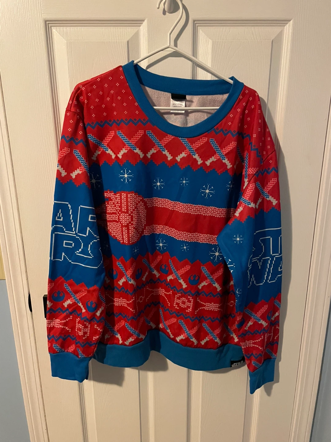 Get ready for the holidays with this fun Star Wars themed "ugly" Christmas sweater! It's an XL and made of 100% polyester. Perfect for any Star Wars fan!