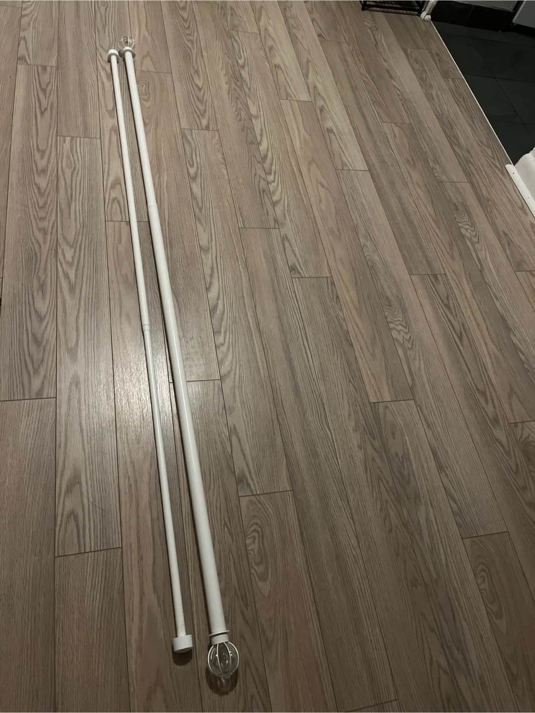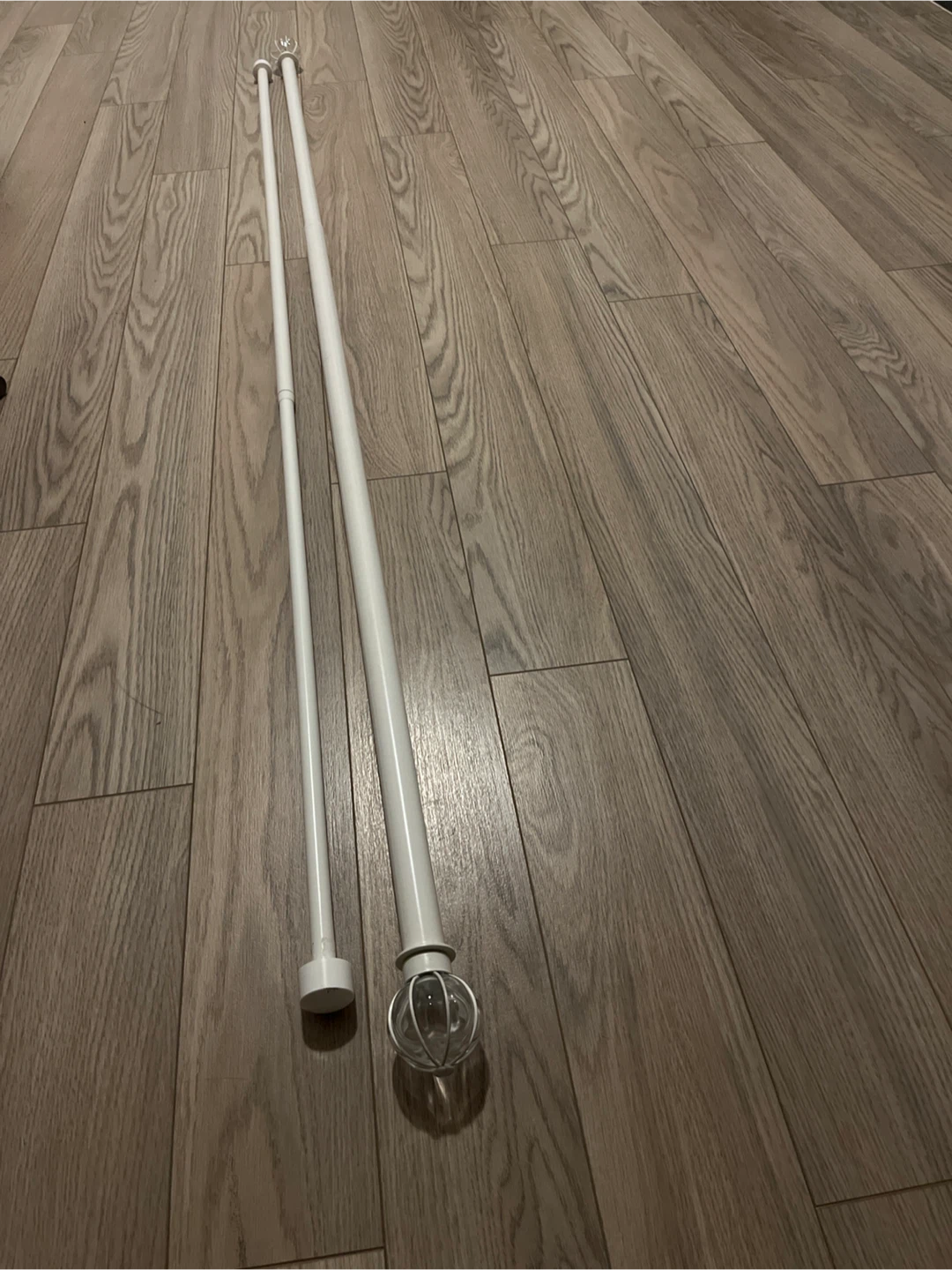 IKEA white double curtain rod. It comes with all the necessary hardware for easy installation. Perfect for adding a touch of elegance to any room!