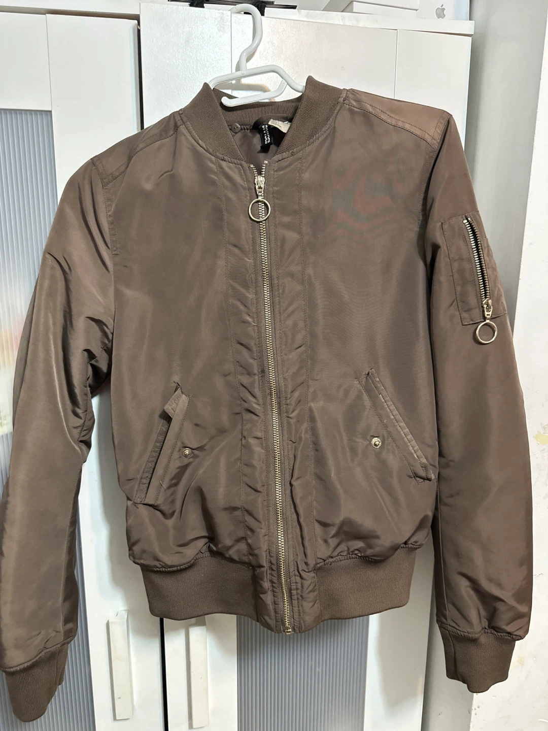 Selling a gently-used H&M Divided bomber jacket in a lovely brown colour. It's a size US 4, CA 4, and CN 160/80A. This stylish jacket is perfect for adding a bit of edge to any outfit!