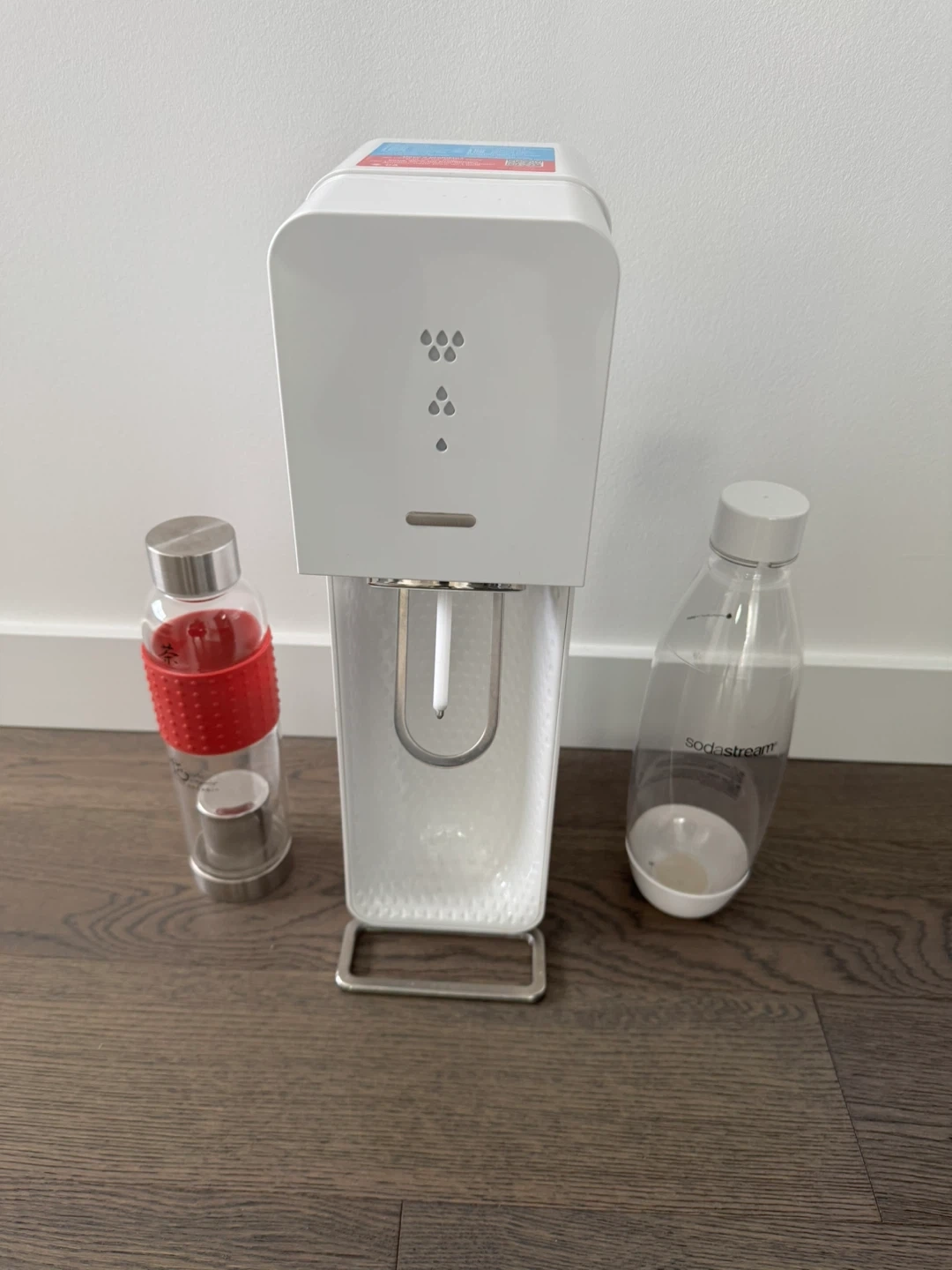 60Selling a SodaStream sparkling water maker. It comes with a half full CO2 tank to get you started on making your own bubbly drinks at home! Also included is a Touch Organic glass bottle with a tea leaf infuser!