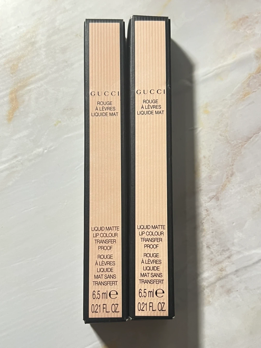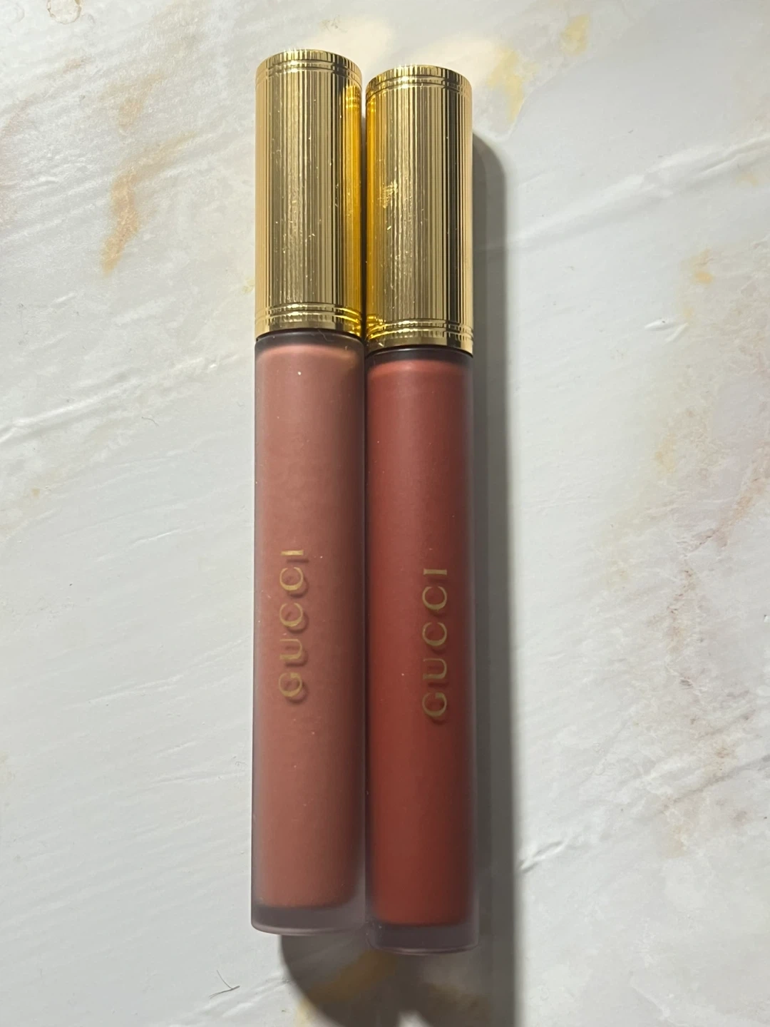 108Gucci Rouge Matte Liquid Lipstick. This liquid matte lip colour is transfer-proof and comes in a 6.5 ml / 0.21 fl oz size. The packaging is also included. Selling two colors 114 Grace cinnamon 203 Mildred rosewood 40 each. 75 if taking both Bought at Sephora this July Original price at Sephora 75 incl. tax each Cash only Pickup only