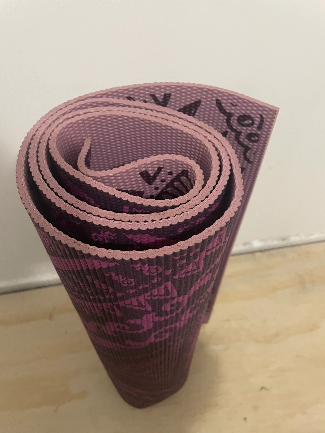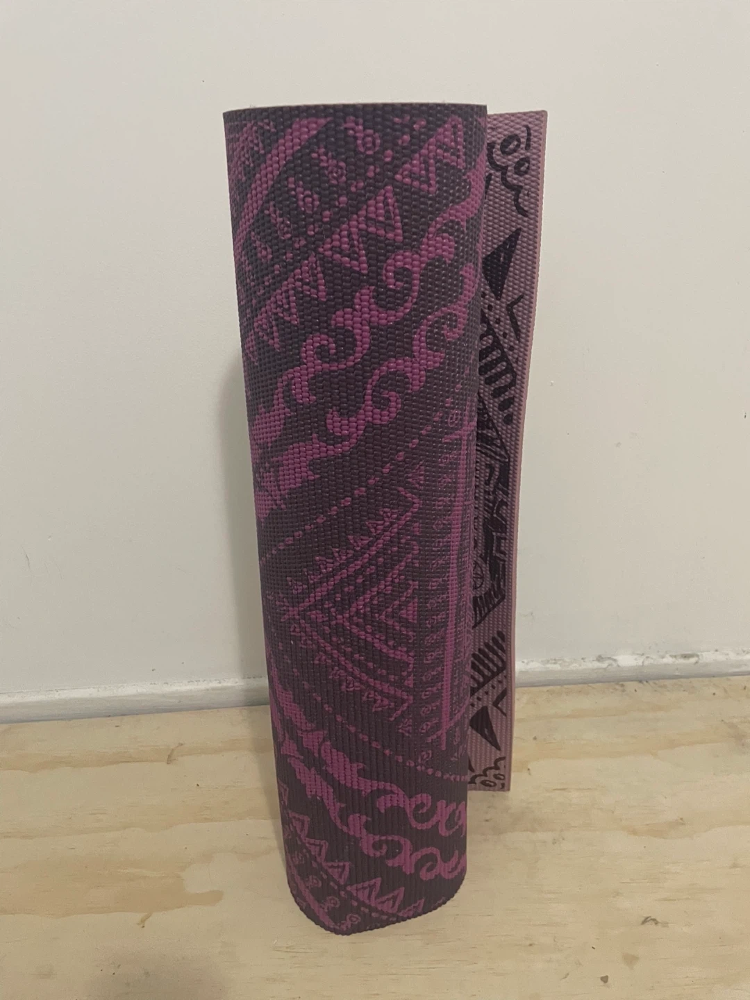 Selling a Gaiam yoga mat in great condition! Perfect for your home workouts or yoga classes. Lovely purple/pink pattern (use whichever side you prefer- the other side is a lighter shade).