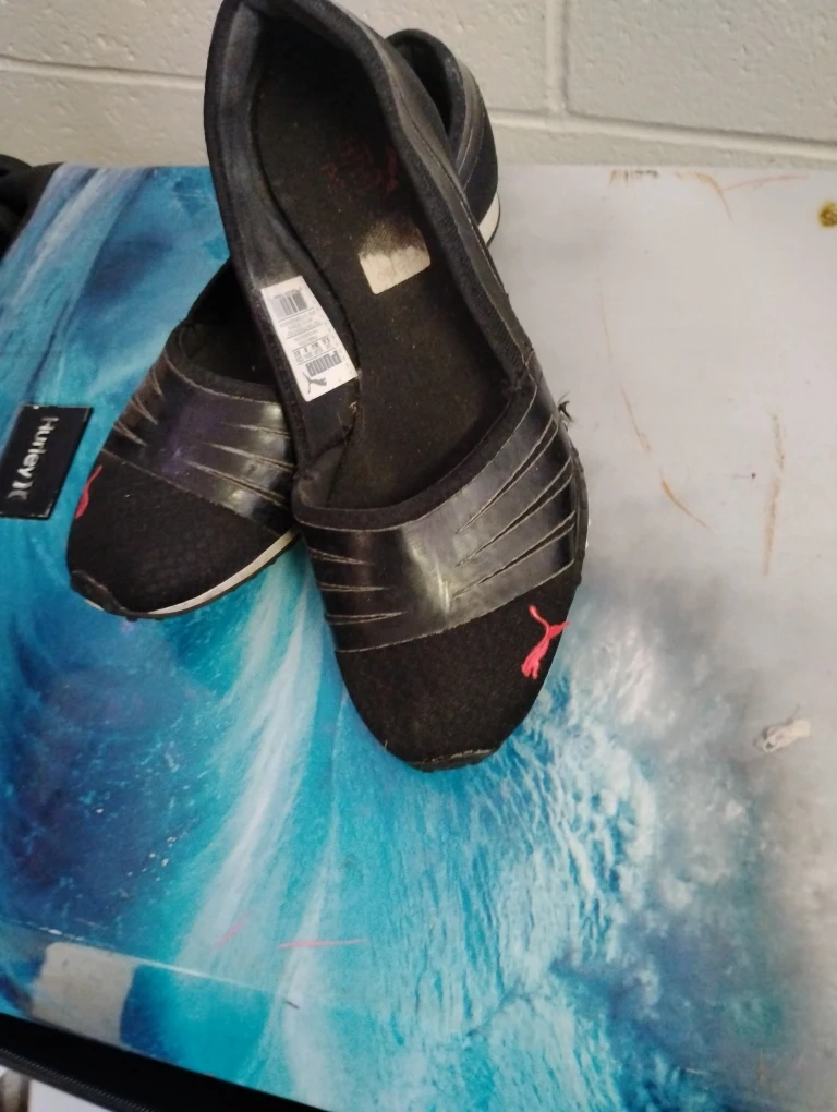 10Selling a pair of Puma ballet flats in size 8 They are black with a red Puma logo. Great for casual wear!