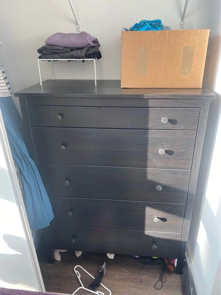 17IKEA HEMNES 5-Drawer Dresser Dark brown colour Condition: used, but no damage and fully functioning Height: 45 inches Length: 35.5 inches Width: 17.5 inches Pickup near Vaughan subway station