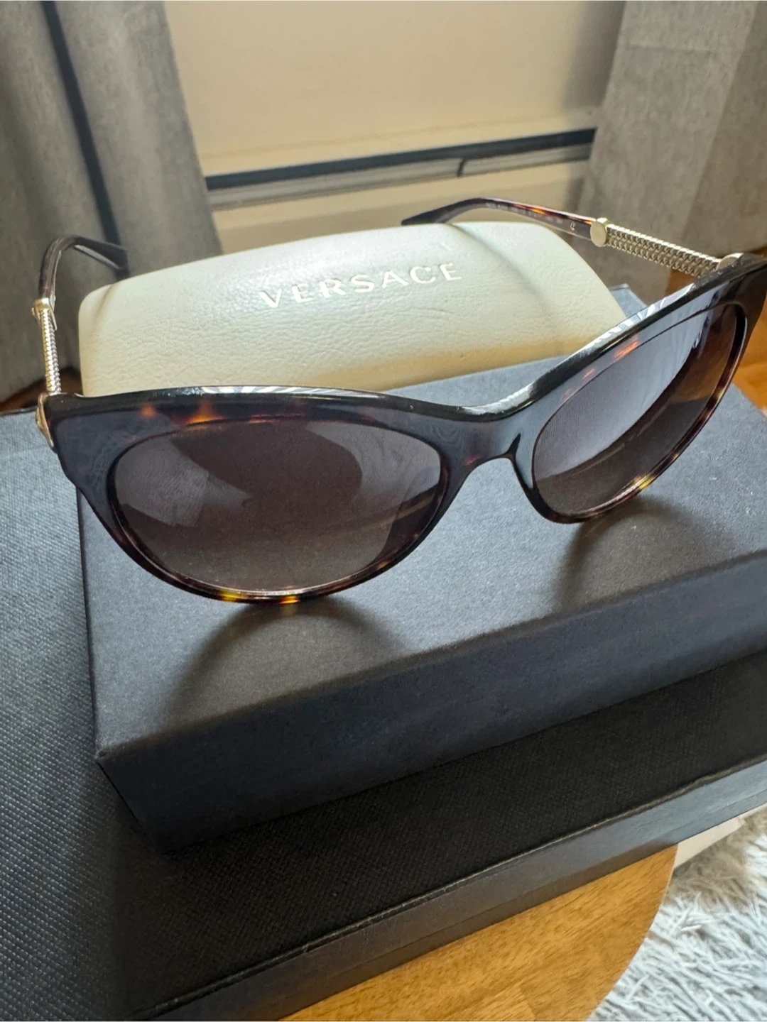 Selling a pair of Versace sunglasses in a stylish tortoise shell pattern. They come with the original Versace case, These sunglasses are in great condition and ready for a new owner