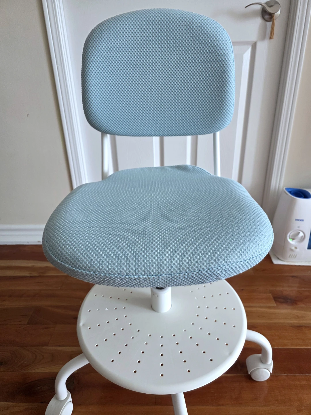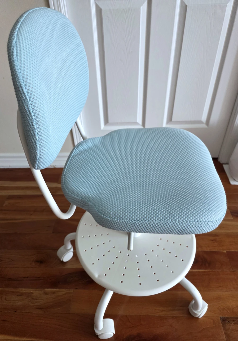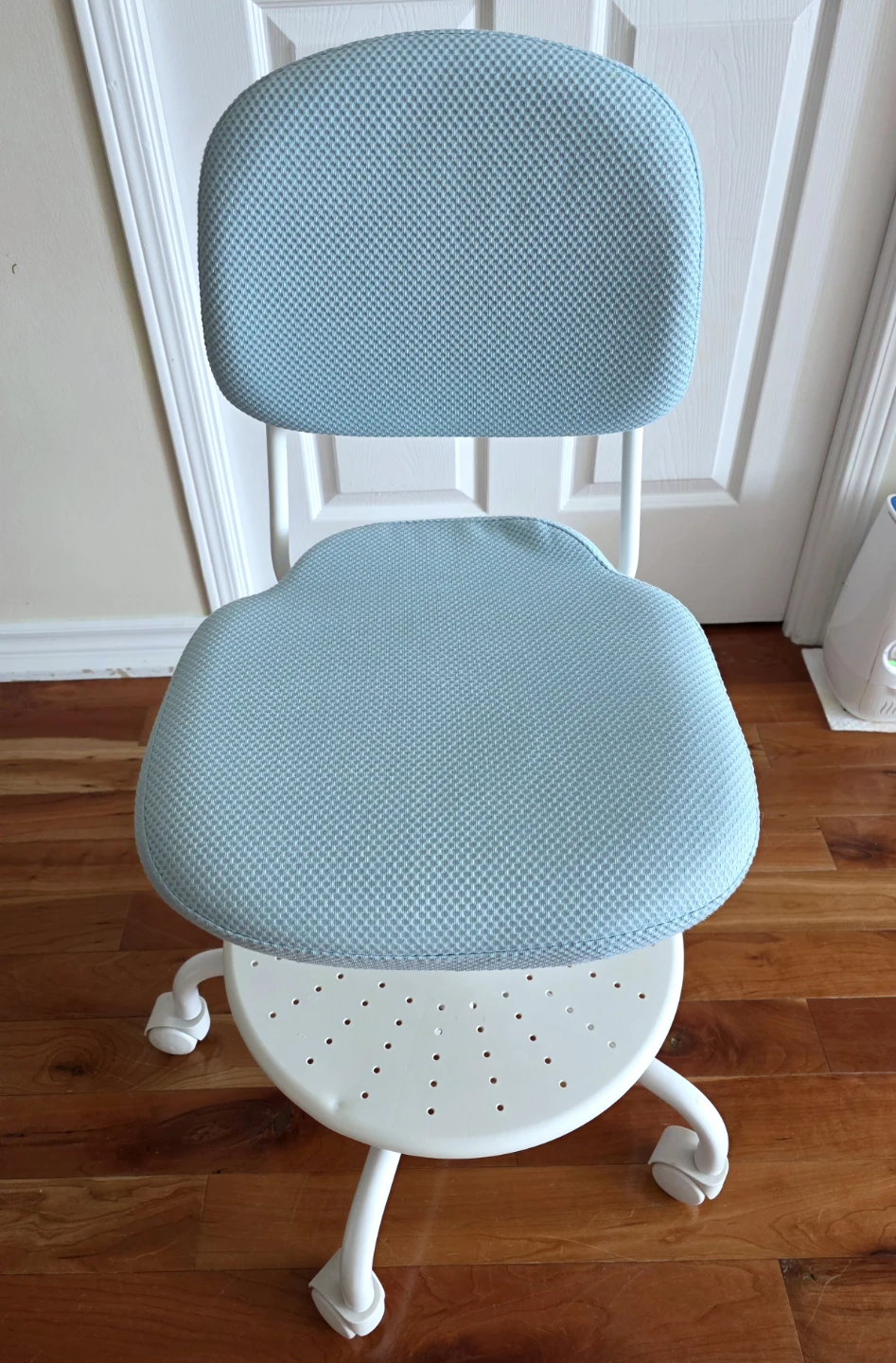 Ikea kids desk chair in blue.