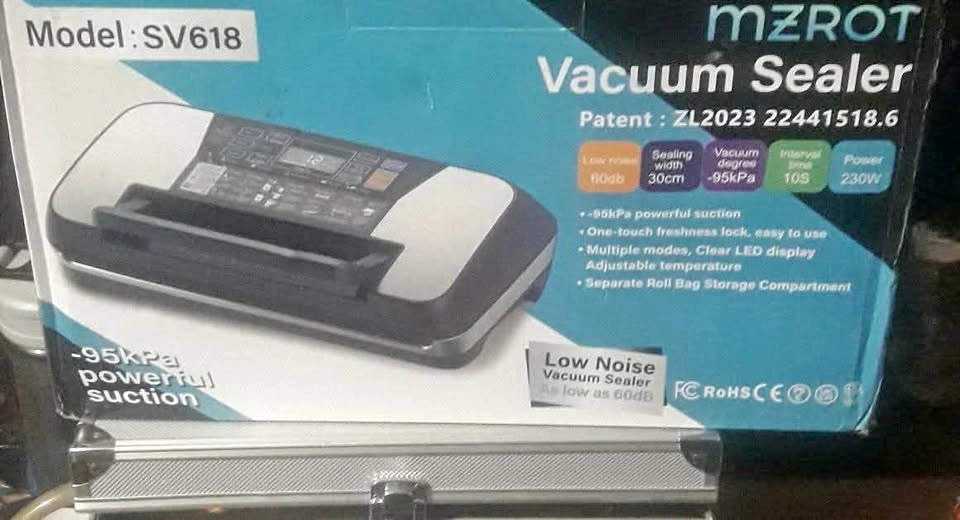 MZROT 95kpa Vacuum Sealer Machine, model SV618. It features 95kpa powerful suction and one-touch freshness lock. It's easy to use with multiple modes and a clear LED display. Also includes a separate roll bag storage compartment. Originally listed for $499.99, now selling for $151.65! It's brand new